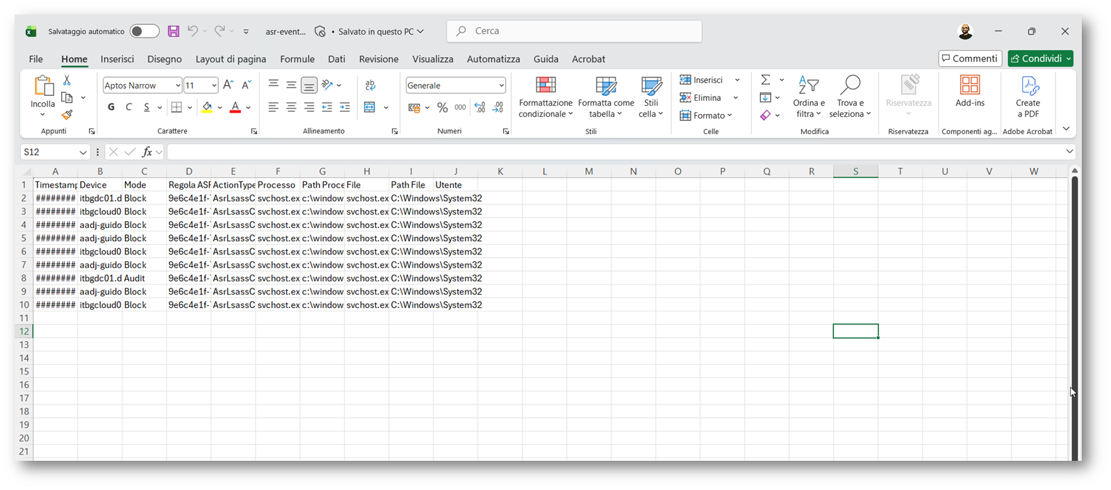 NB: Il processo indicato è di sistema ed è utilizzato per test, non escludete tale processo dalle regole ASR per motivi di sicurezza