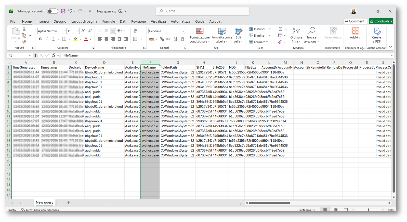 Figura 3: File di Export che contiene le detection