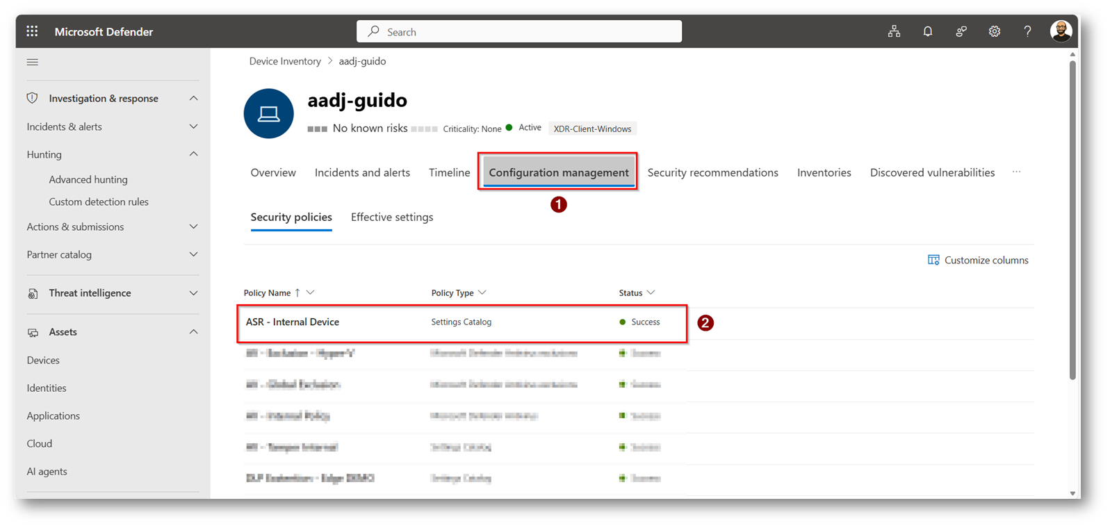 Una volta che si hanno queste informazioni è possibile modificare la policy di ASR per configurare le opportune esclusioni, prendiamo come esempio il mio dispositivo aadj-guido