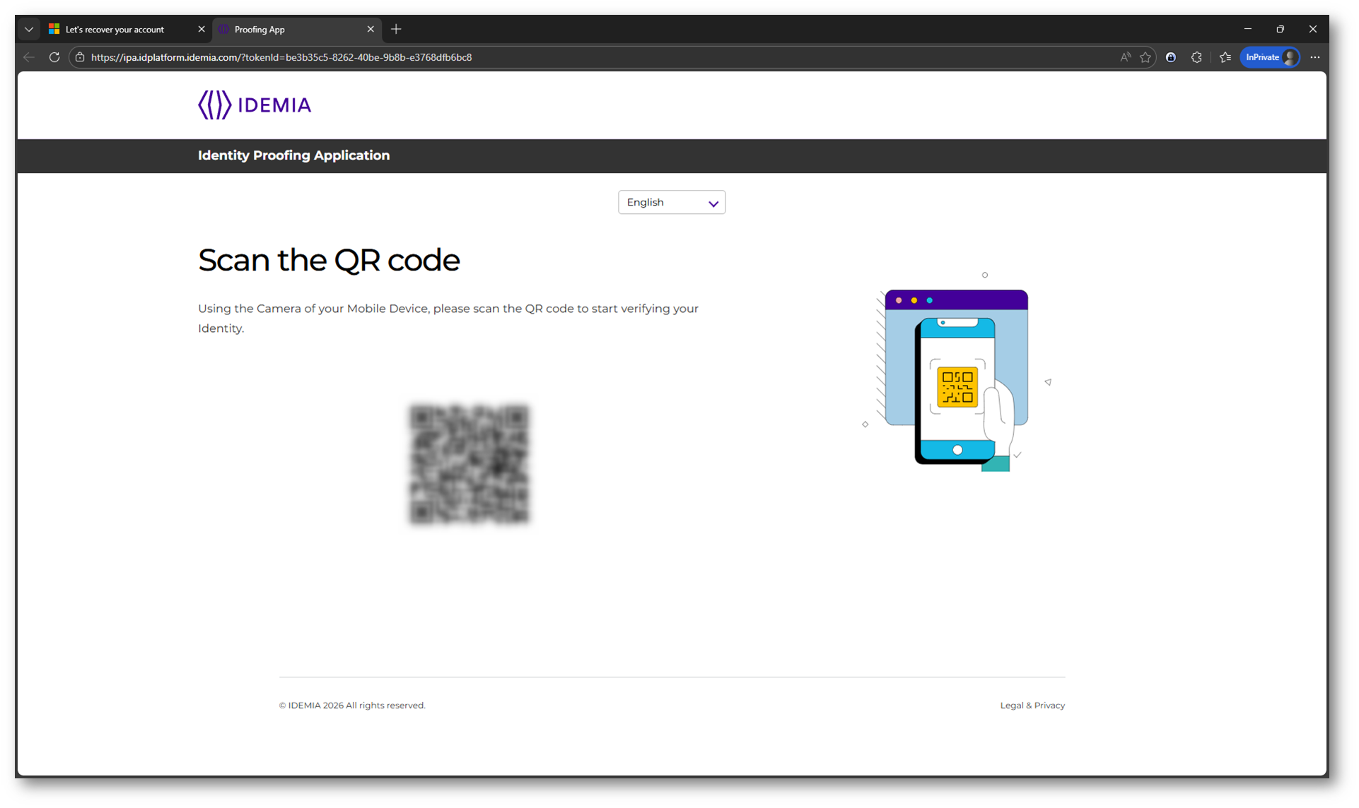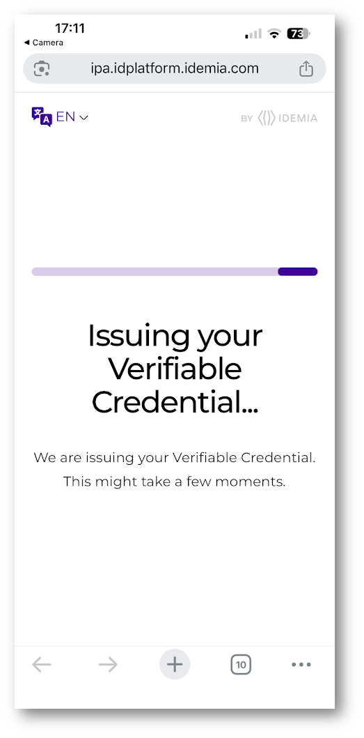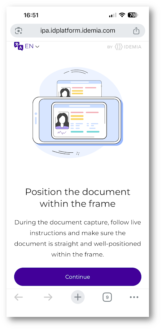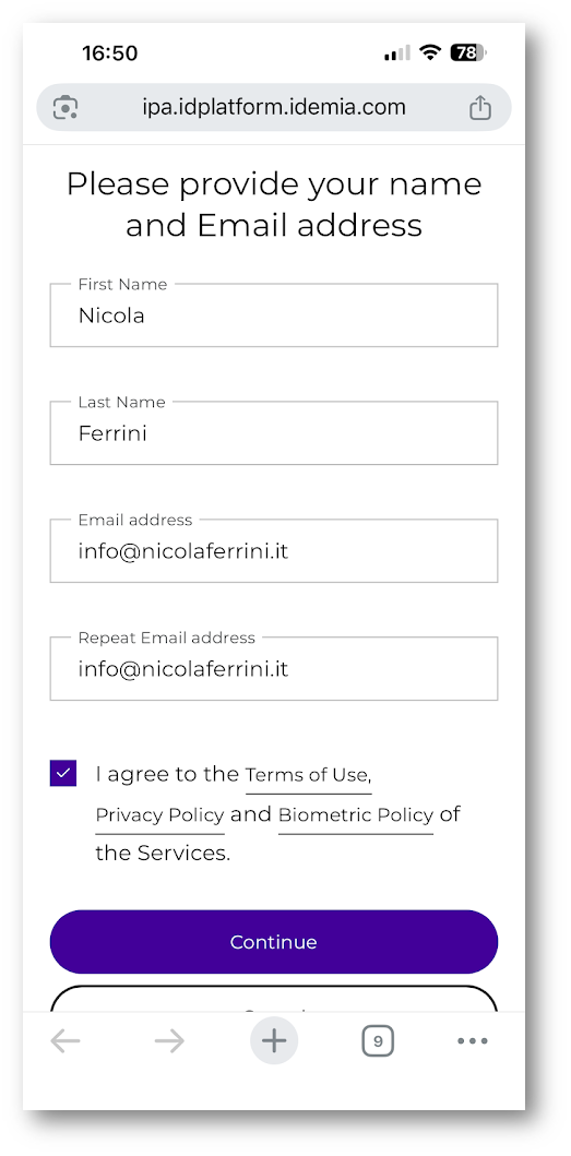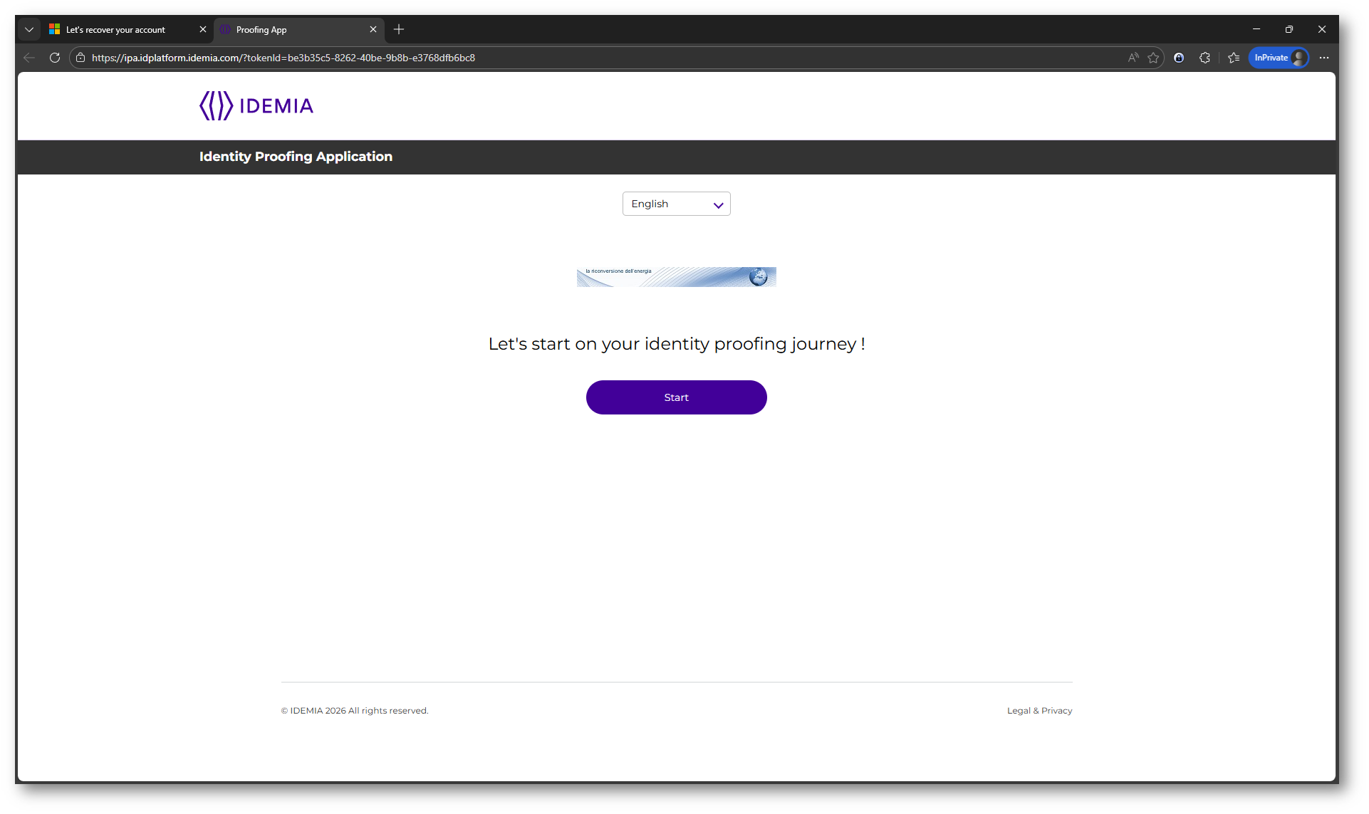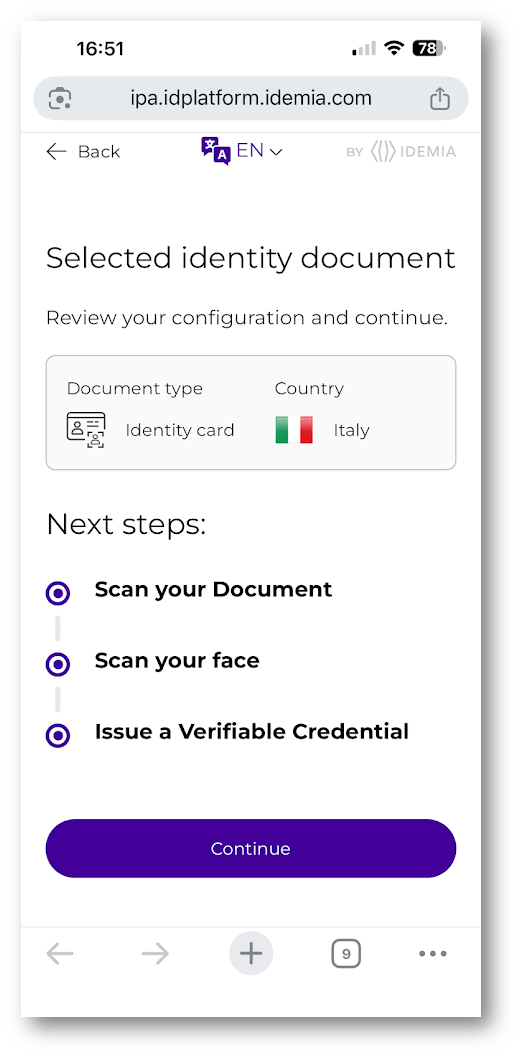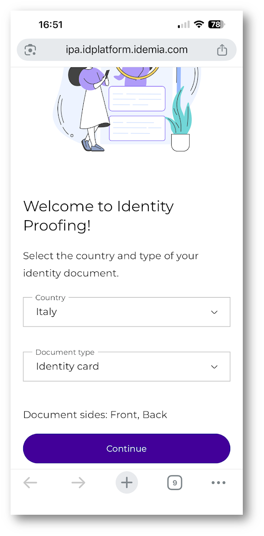 Dopo il reindirizzamento, l’utente entra nel portale del provider IDEMIA, dove inizia il processo di identity proofing.