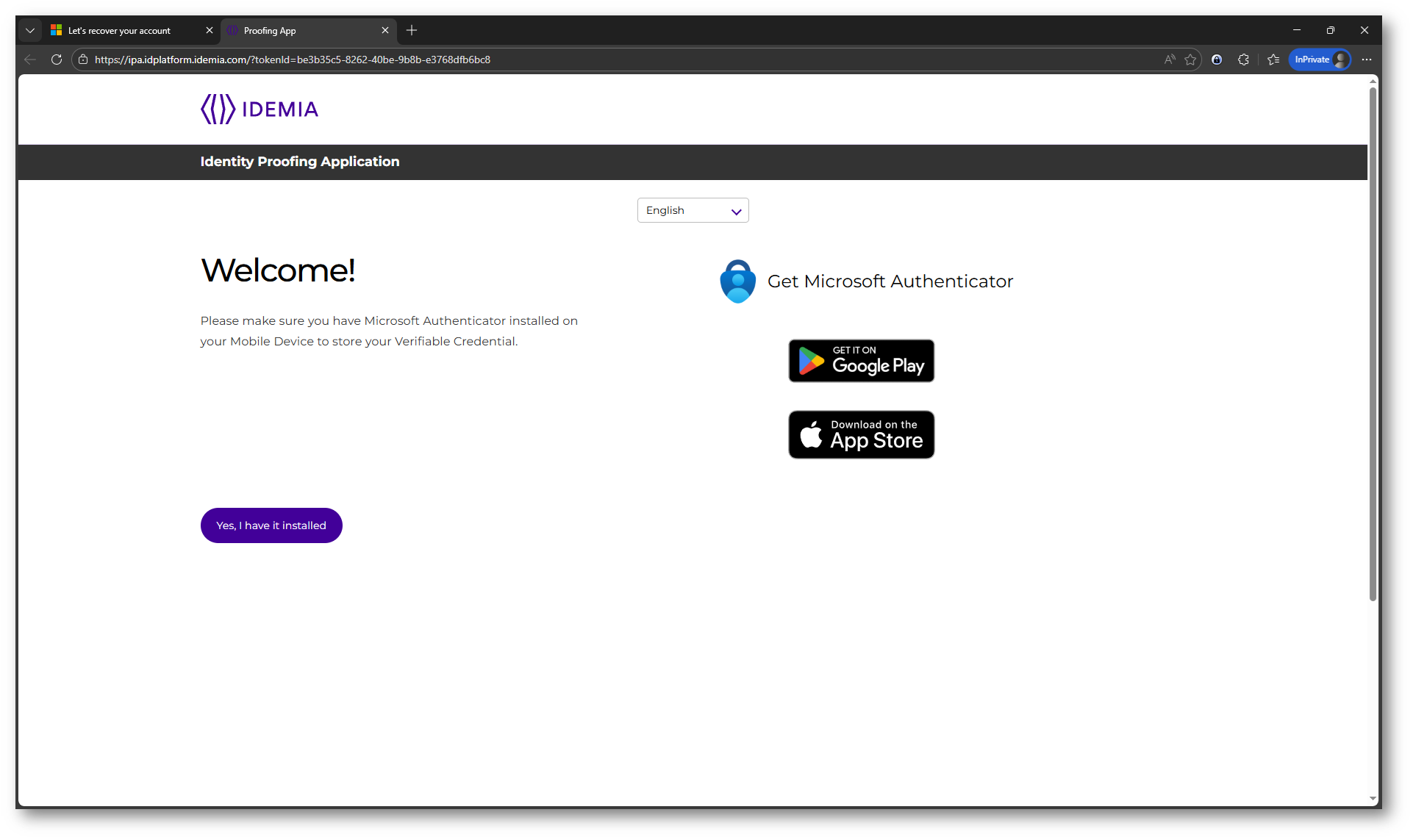 Nel passo successivo, il flusso di IDEMIA introduce un requisito fondamentale: l’utente deve avere installata l’app Microsoft Authenticator sul proprio dispositivo mobile.