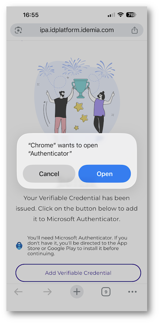 Se tutti i controlli hanno esito positivo, il sistema considera l’identità verificata e genera una Verified ID, che viene salvata direttamente sul dispositivo dell’utente all’interno di Microsoft Authenticator. In caso contrario, la verifica viene rifiutata e l’utente deve ripetere il processo. Nel frattempo, il browser resta in attesa senza gestire dati sensibili, finché non riceve l’esito finale della verifica dal servizio.