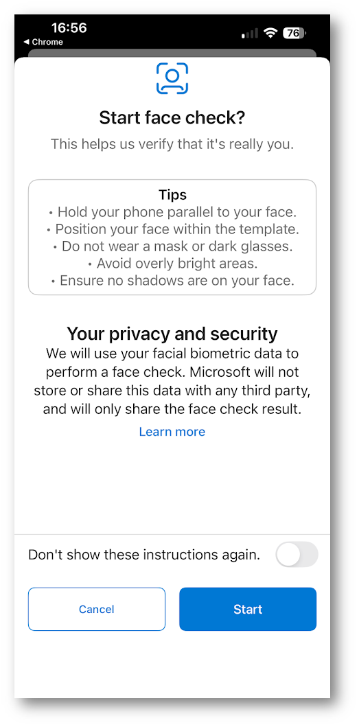 Qui l’esperienza è completamente esterna a Microsoft Entra ID e gestita dal provider selezionato. L’utente deve semplicemente avviare la procedura cliccando su Start.