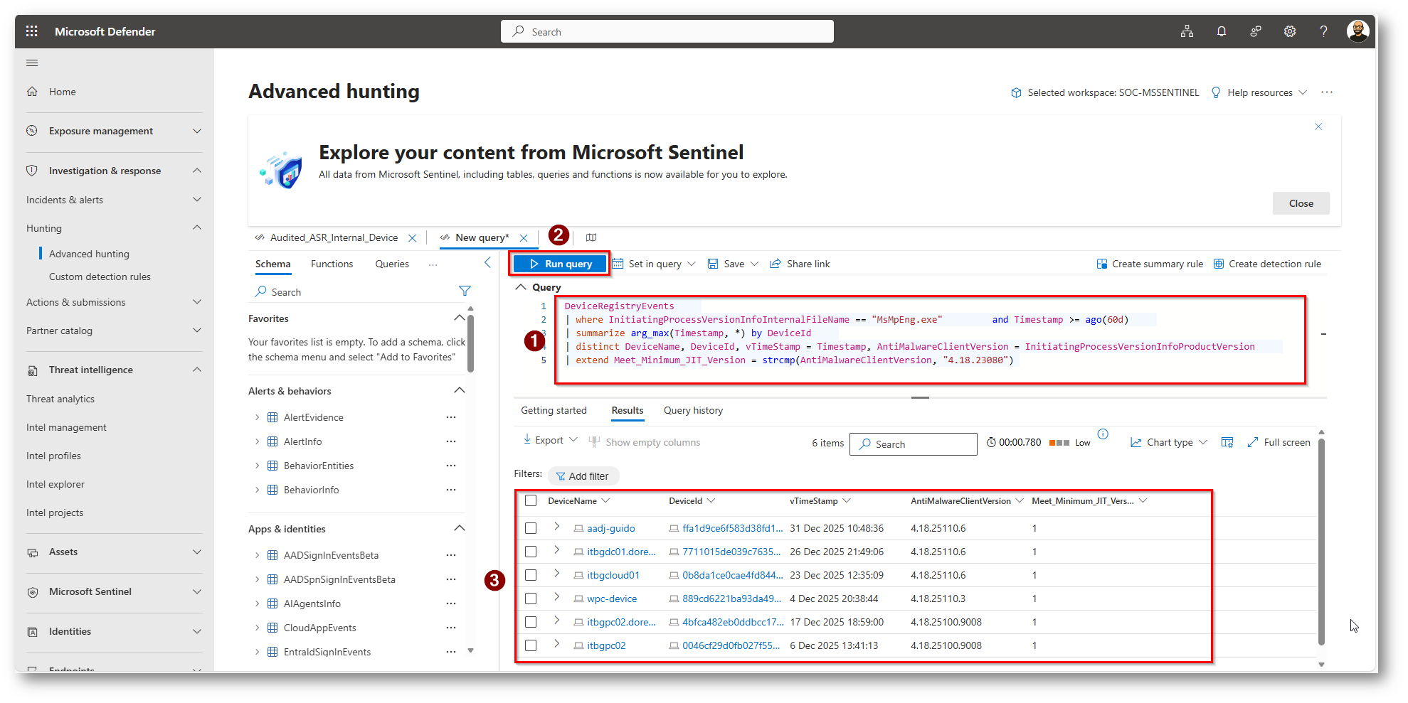 Figure 4: Esecuzione KQL per ricerca delle versioni di anti-malware