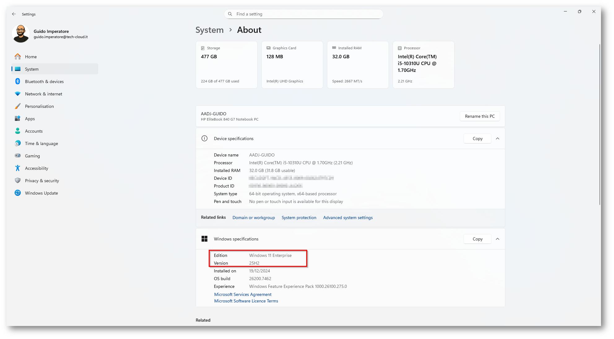 Per la dimostrazione di questa funzionalità io utilizzerò un client Windows 11 25H2 “AADJ-GUIDO”