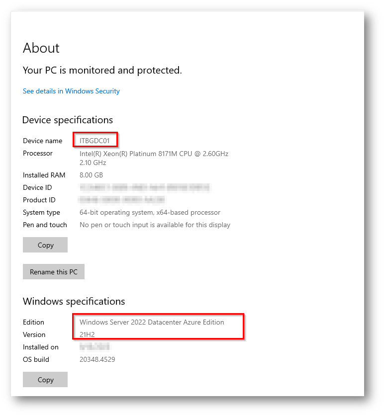 Figura 2: Windows Server 2022 “ITBGDC01” in cui è installato un SQL per la demo