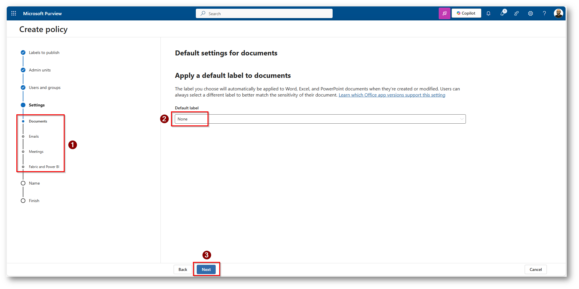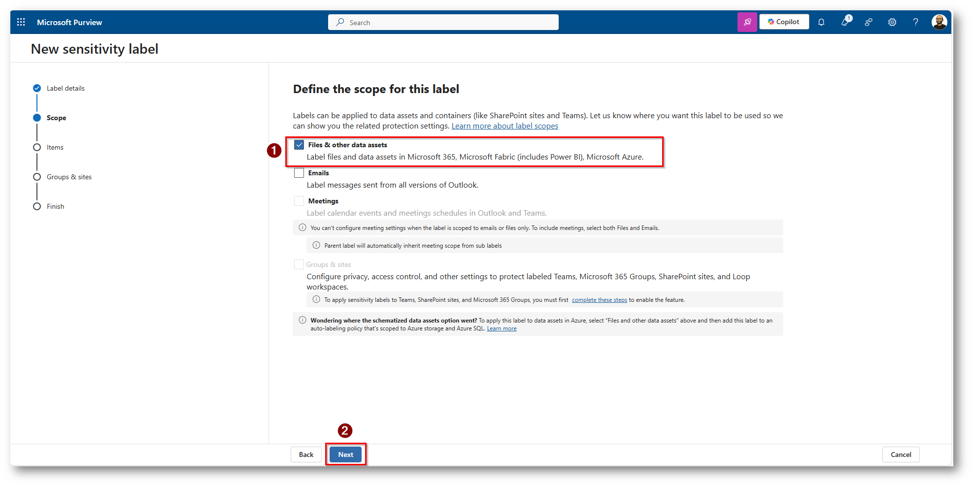 Figura 37: Procediamo alla classificazione dei dati con le policy presenti in Microsoft Purview