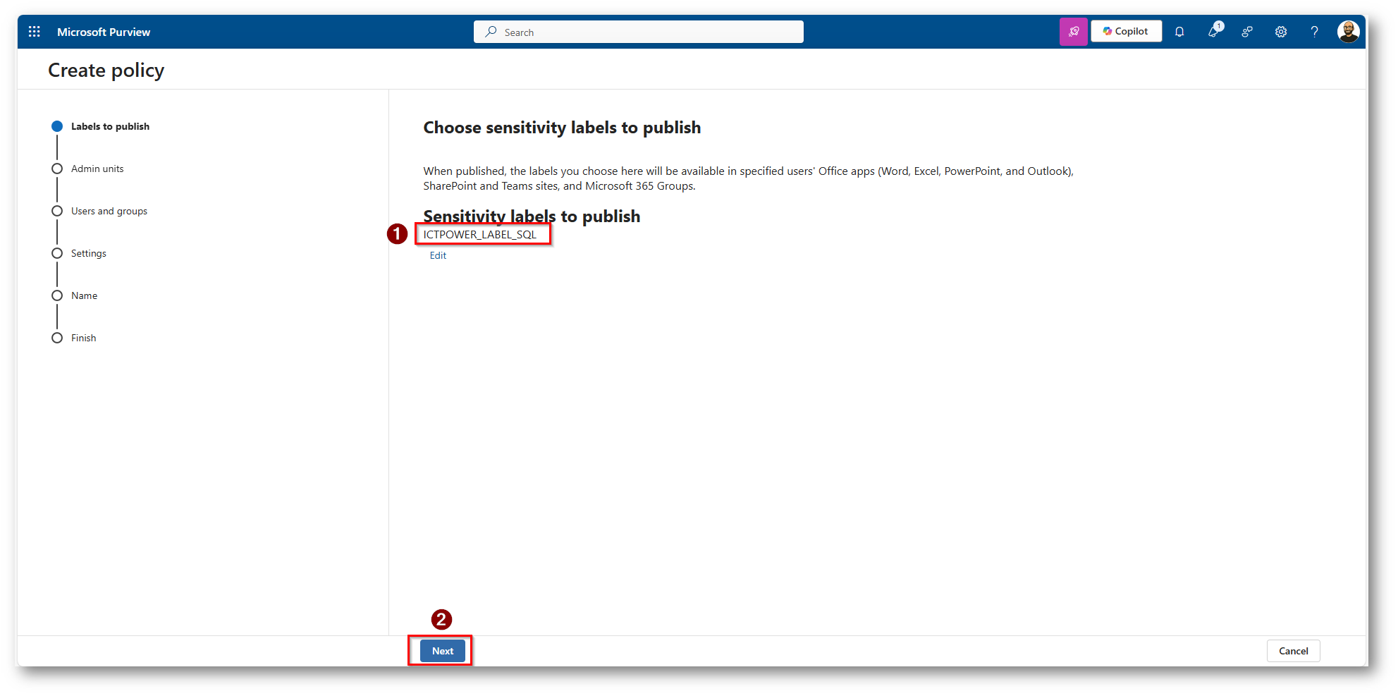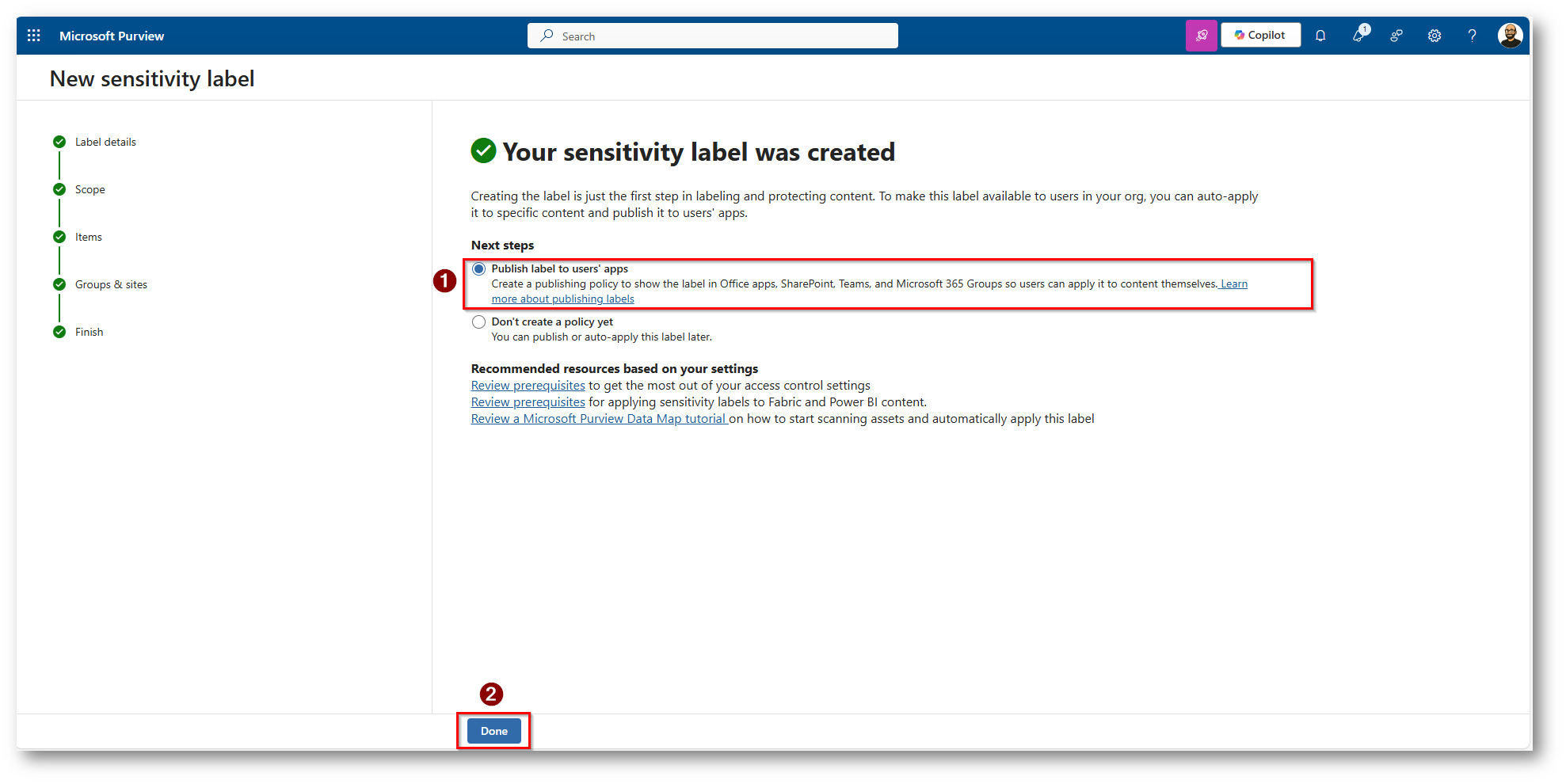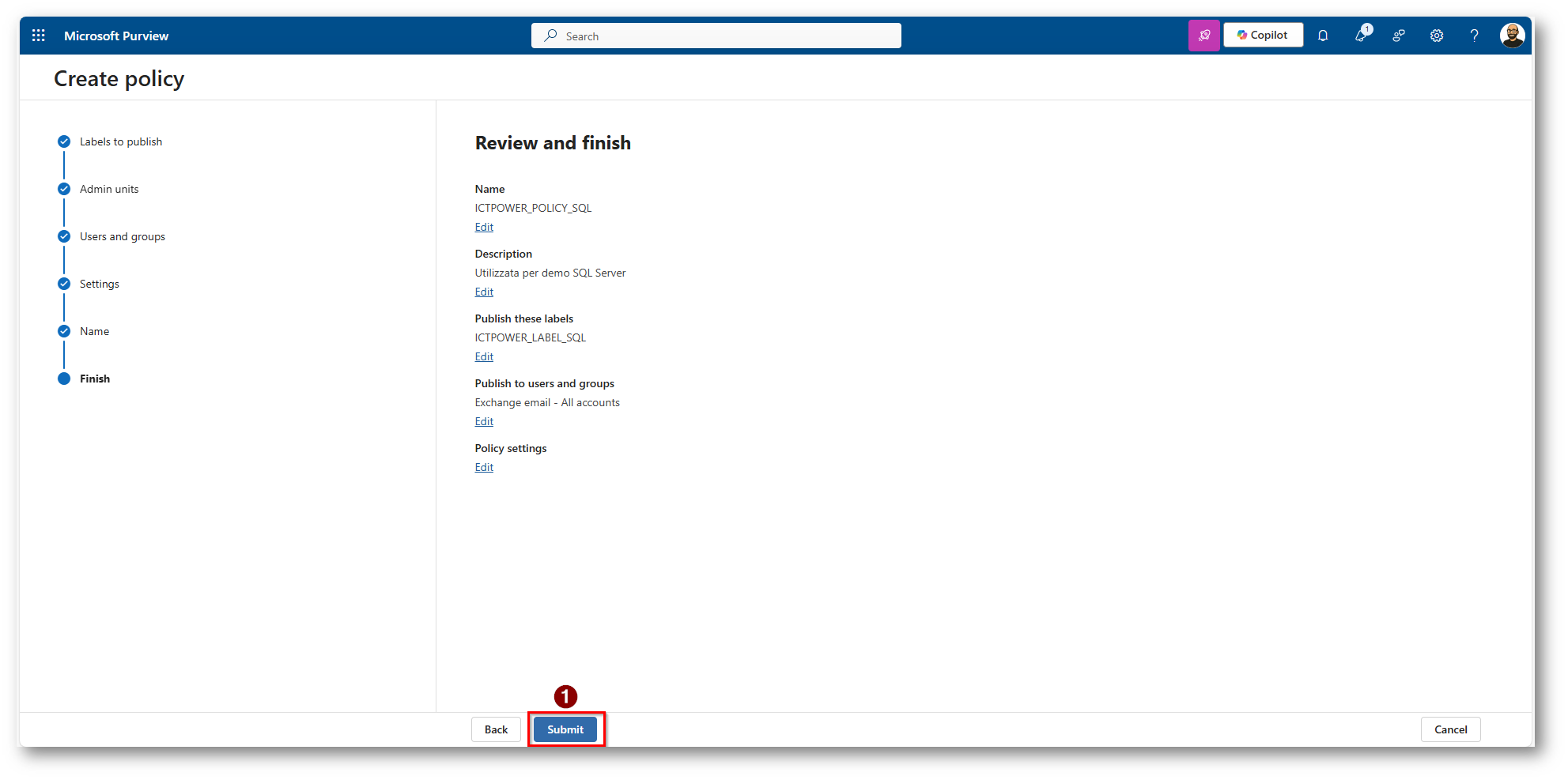 Figura 23: Scegliamo di Pubblicare la label con una Policy
