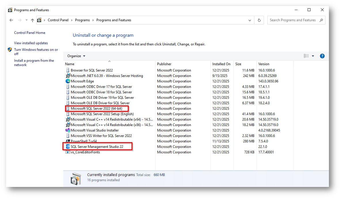 Figura 3: SQL Server 2022 e SSMS 22 Installato sulla macchina per la Demo
