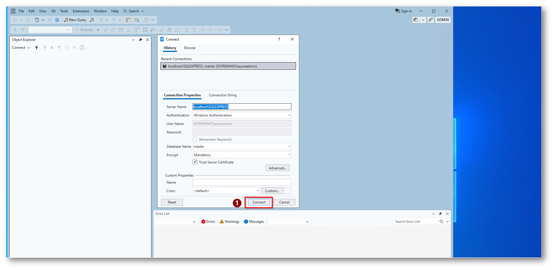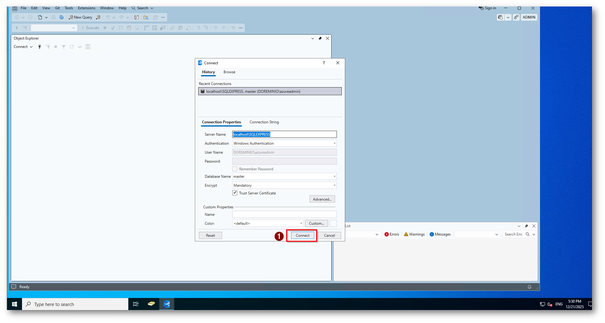 Figura 7: Connessione al Database tramite SQL Server Management Studio