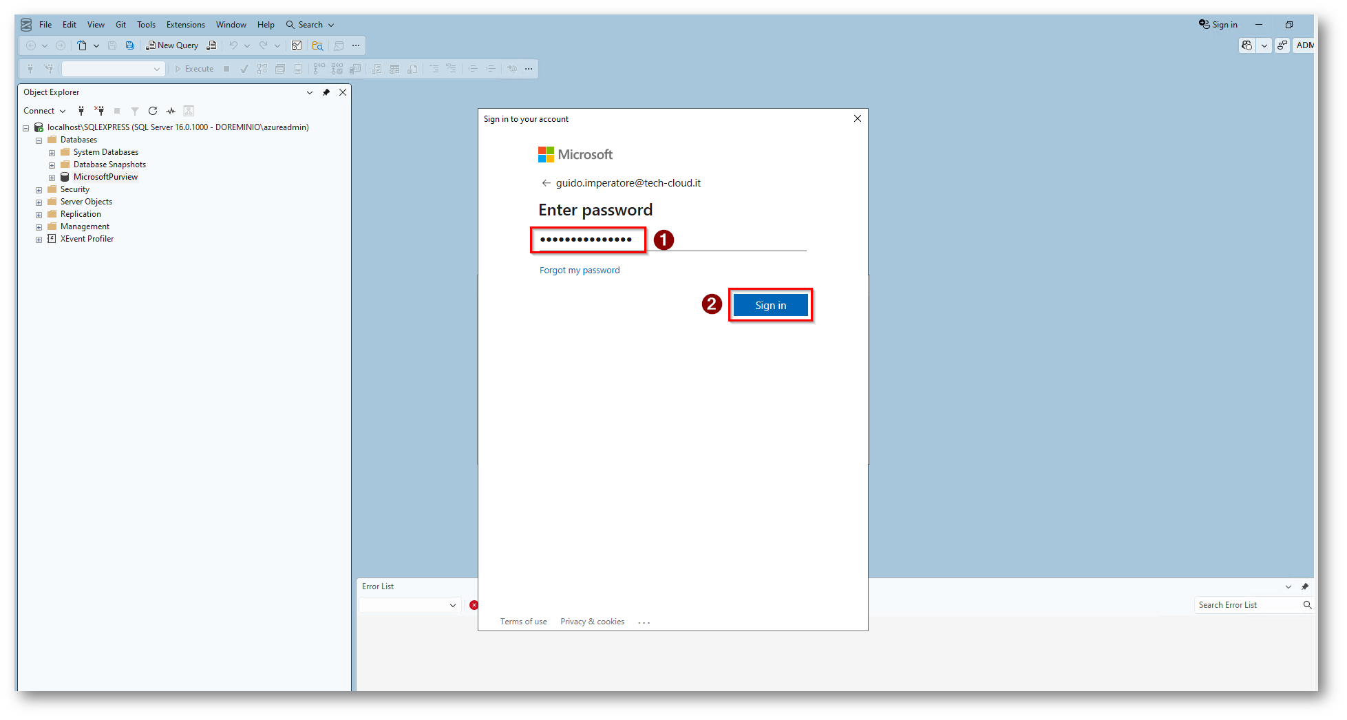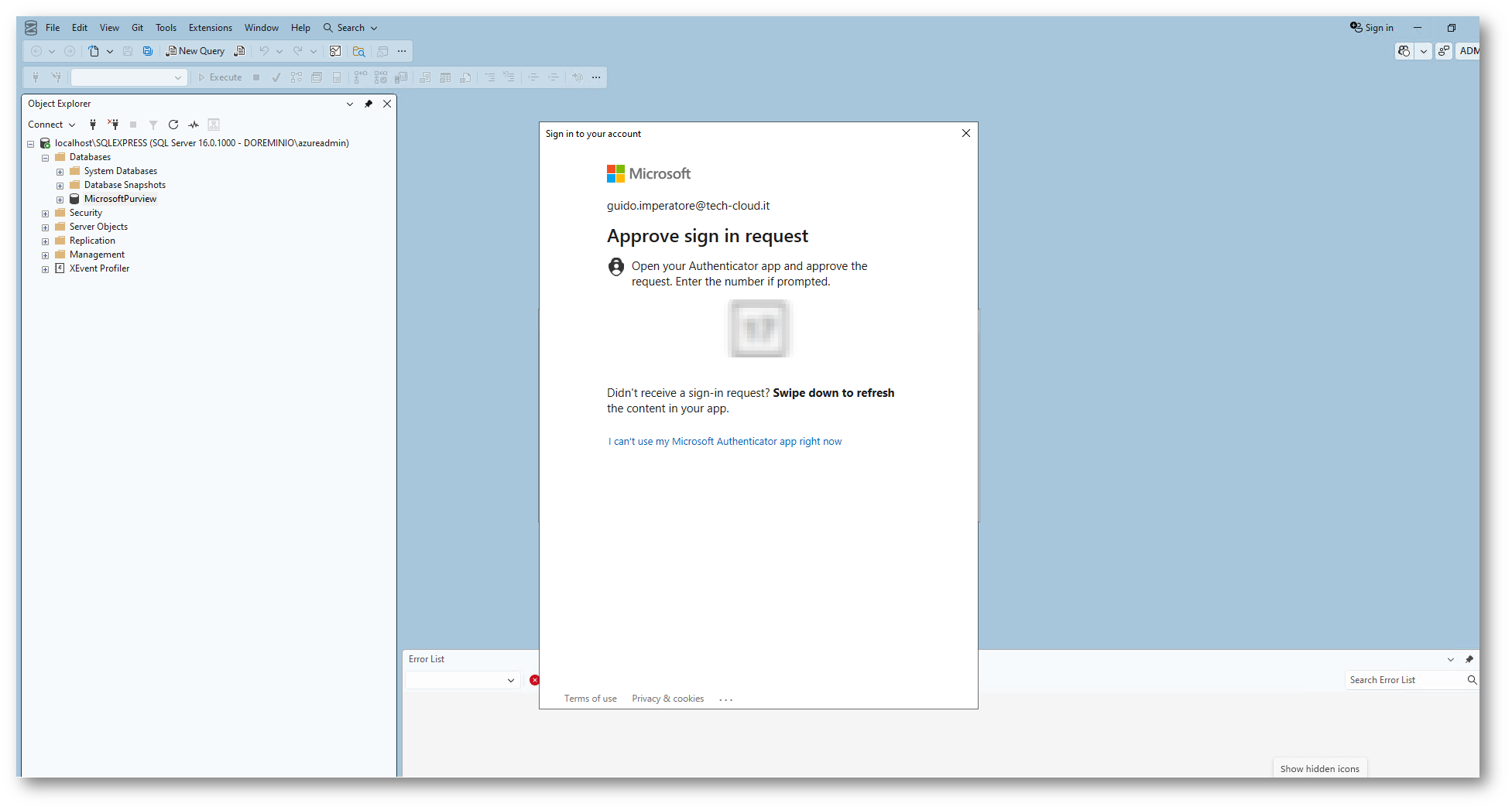 Figura 30: Collegamento al database tramite SQL Server Management Studio