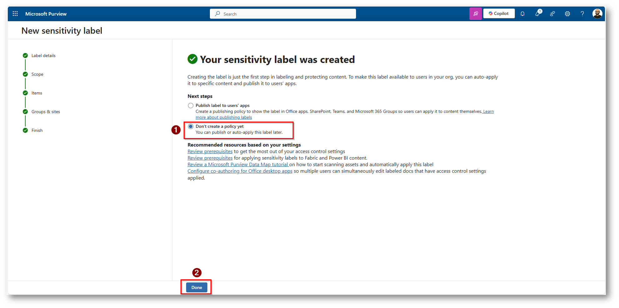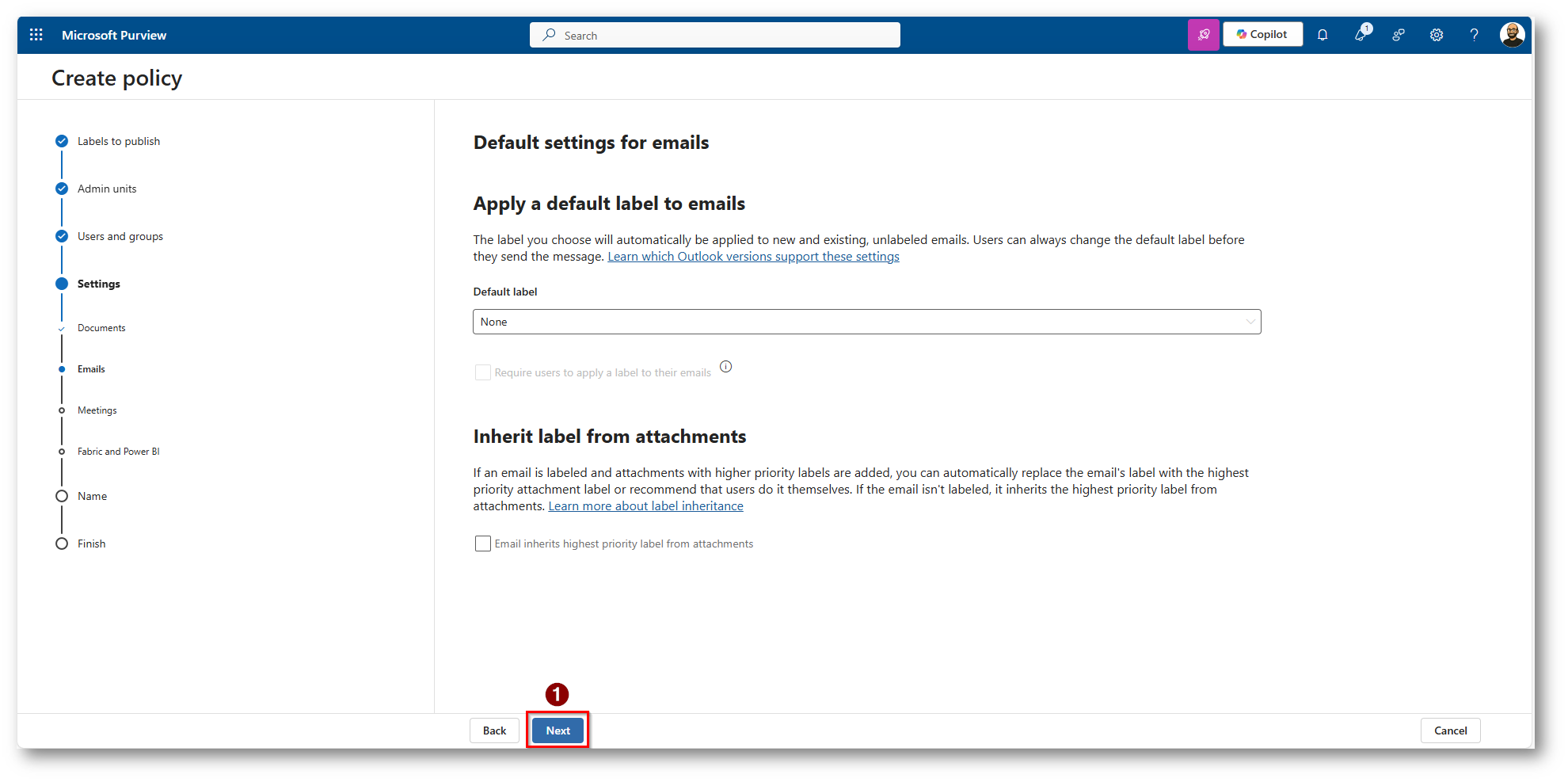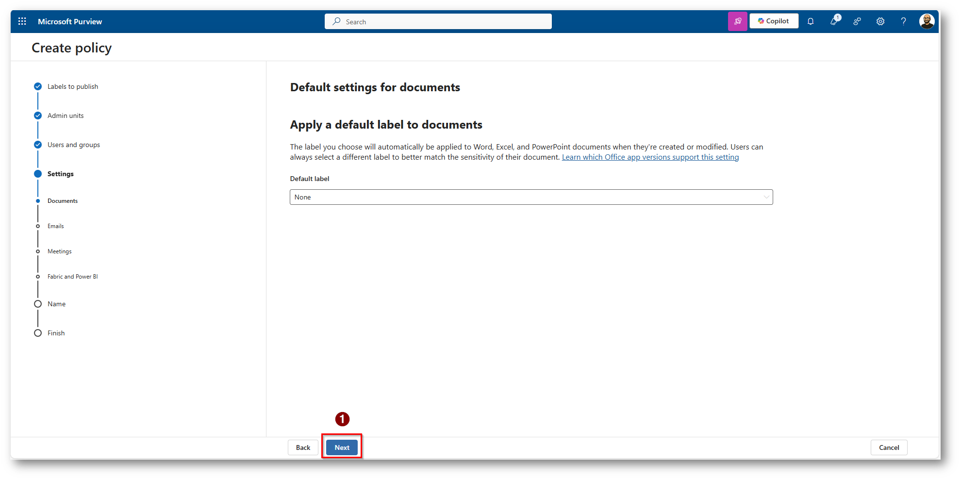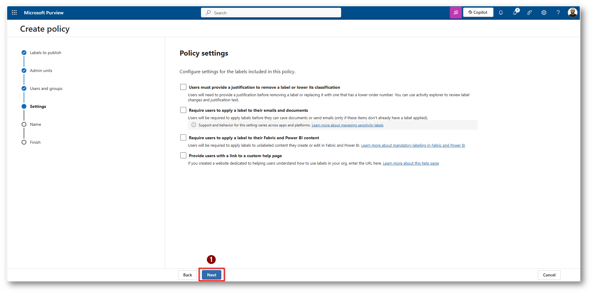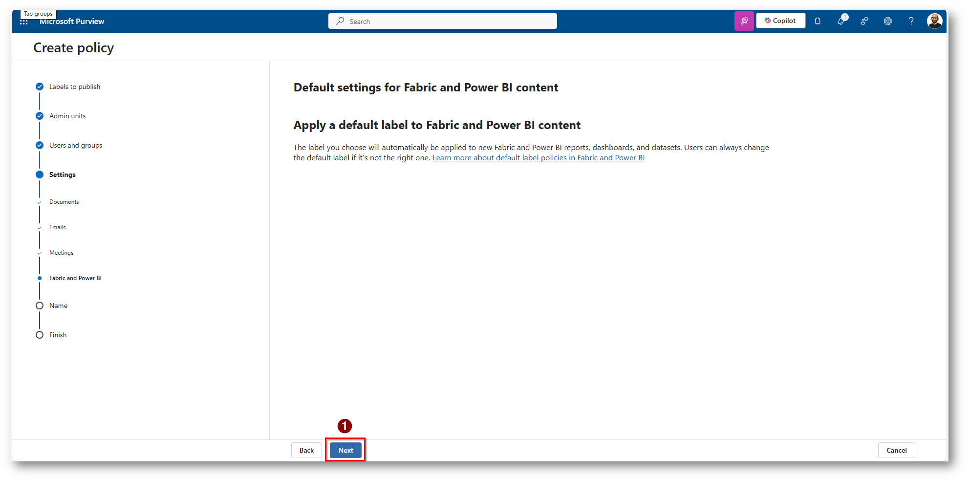 Figura 24: Non applichiamo label di Default a Fabric o PowerBI