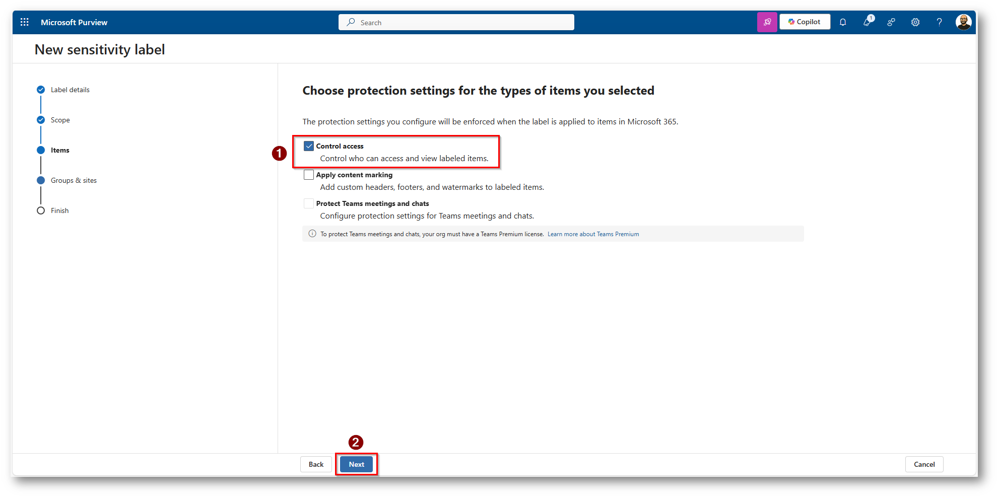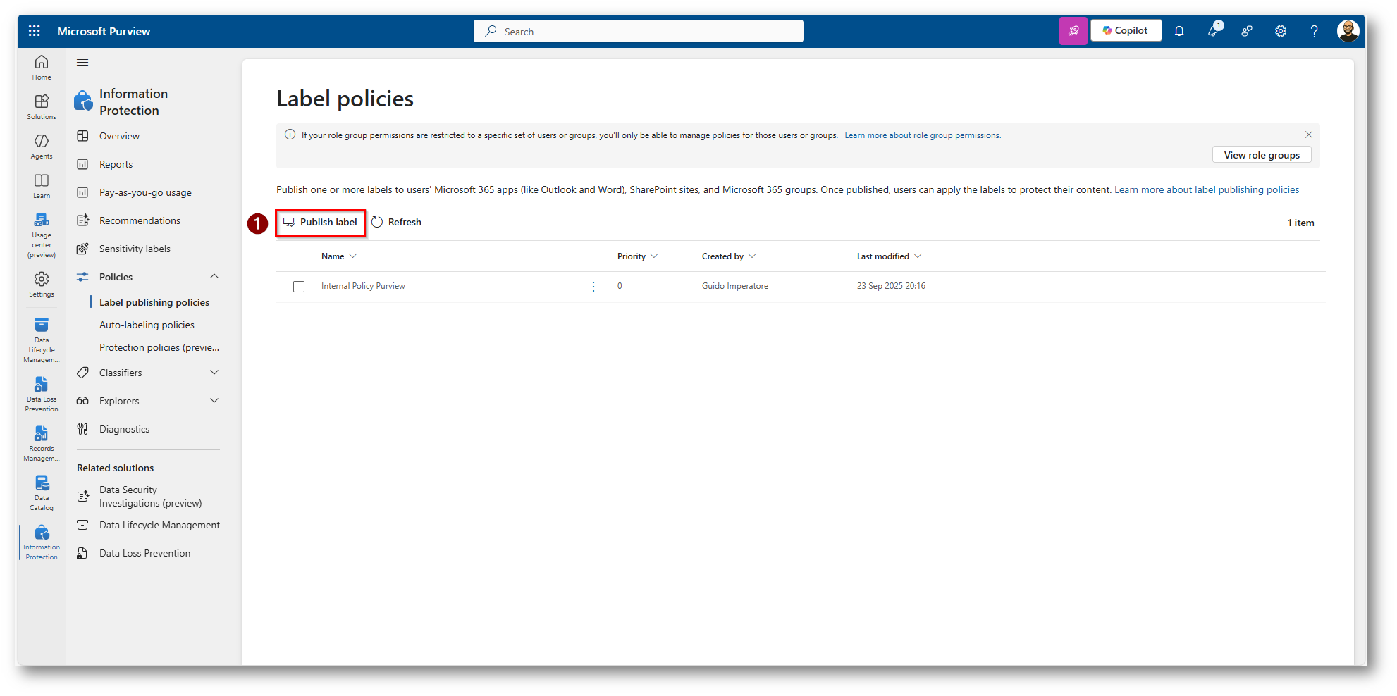 Figura 2: Selezioniamo la componente di Microsoft Purview Information Protection