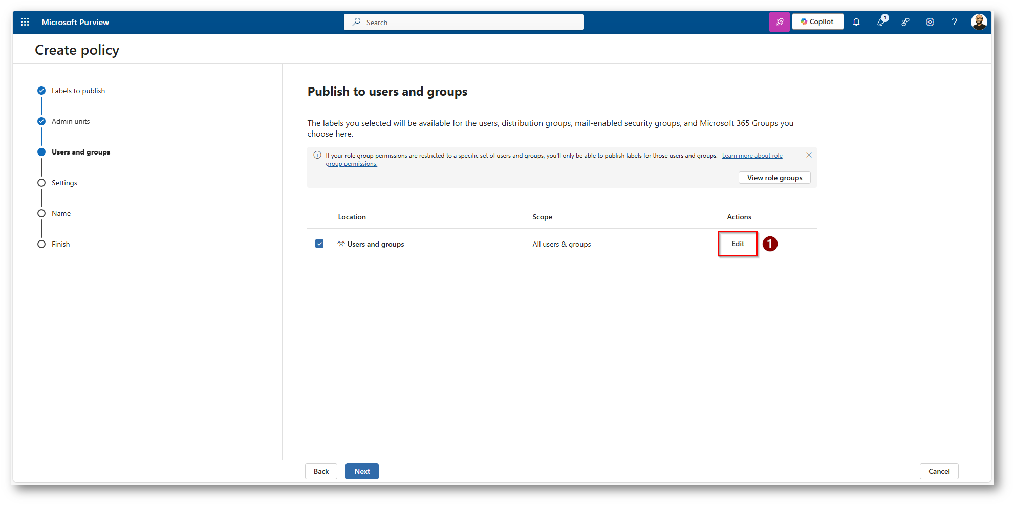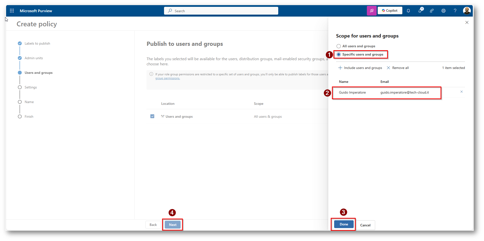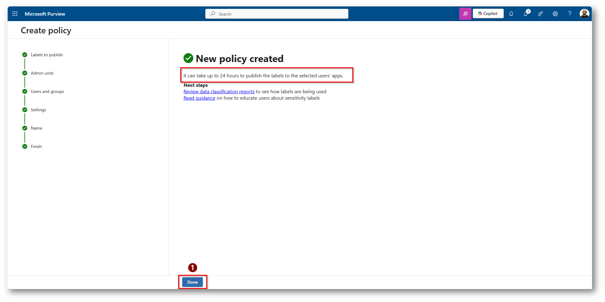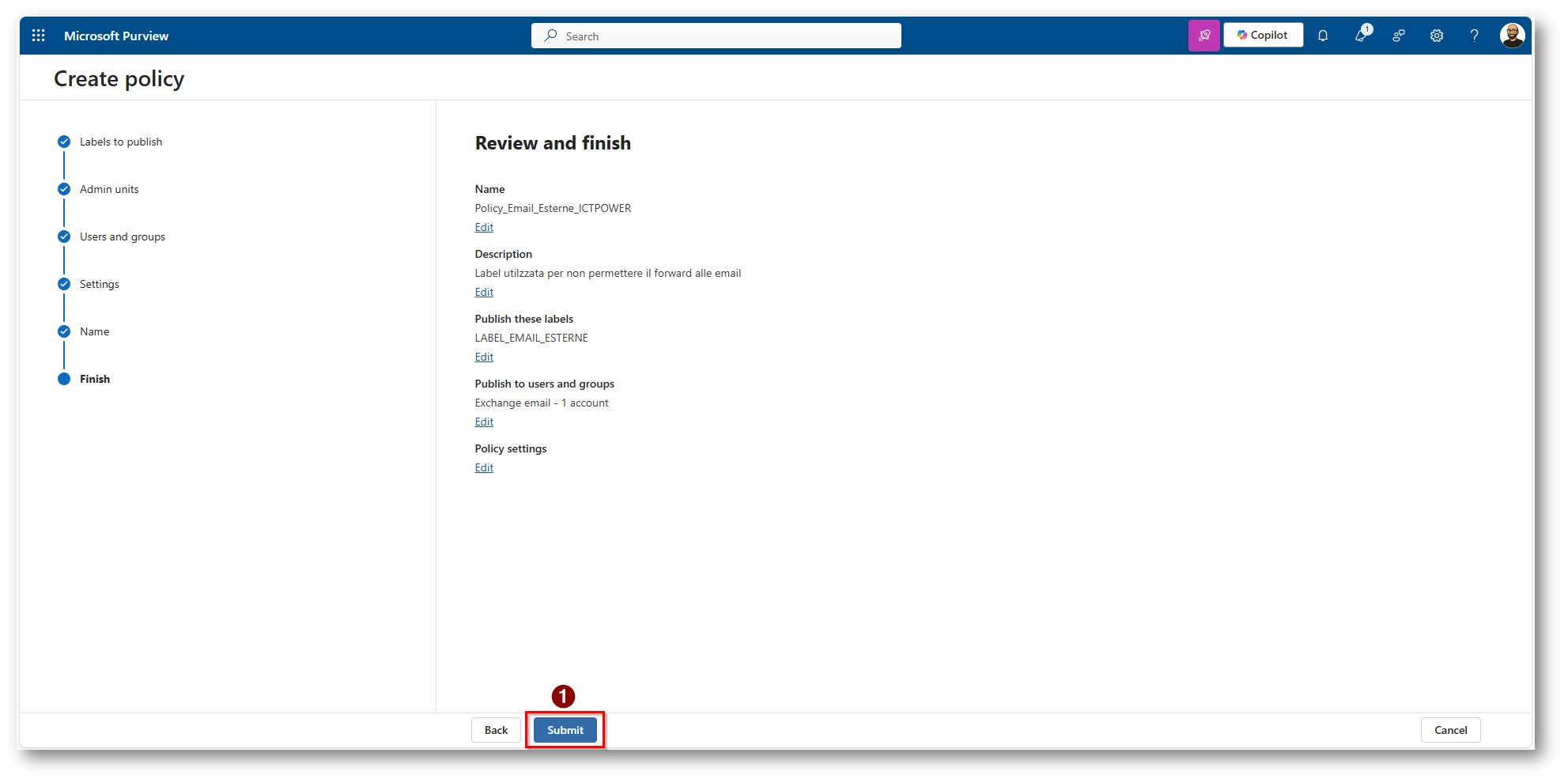 Figura 14: Creazione della Policy di pubblicazione della Label Appena creata