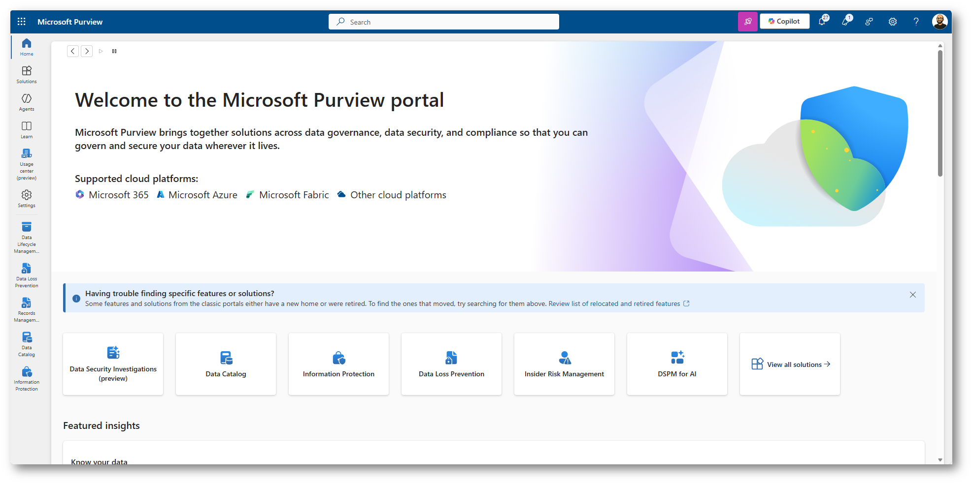 Figura 1: Portale di Microsoft Purview