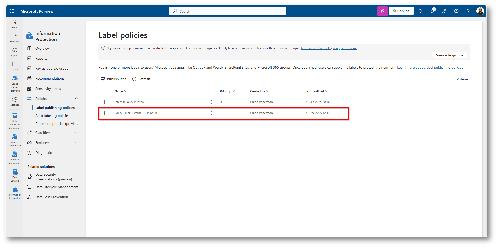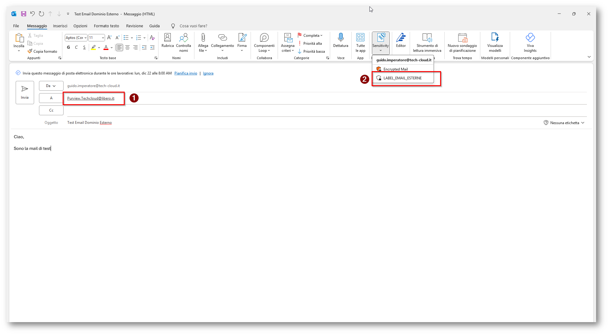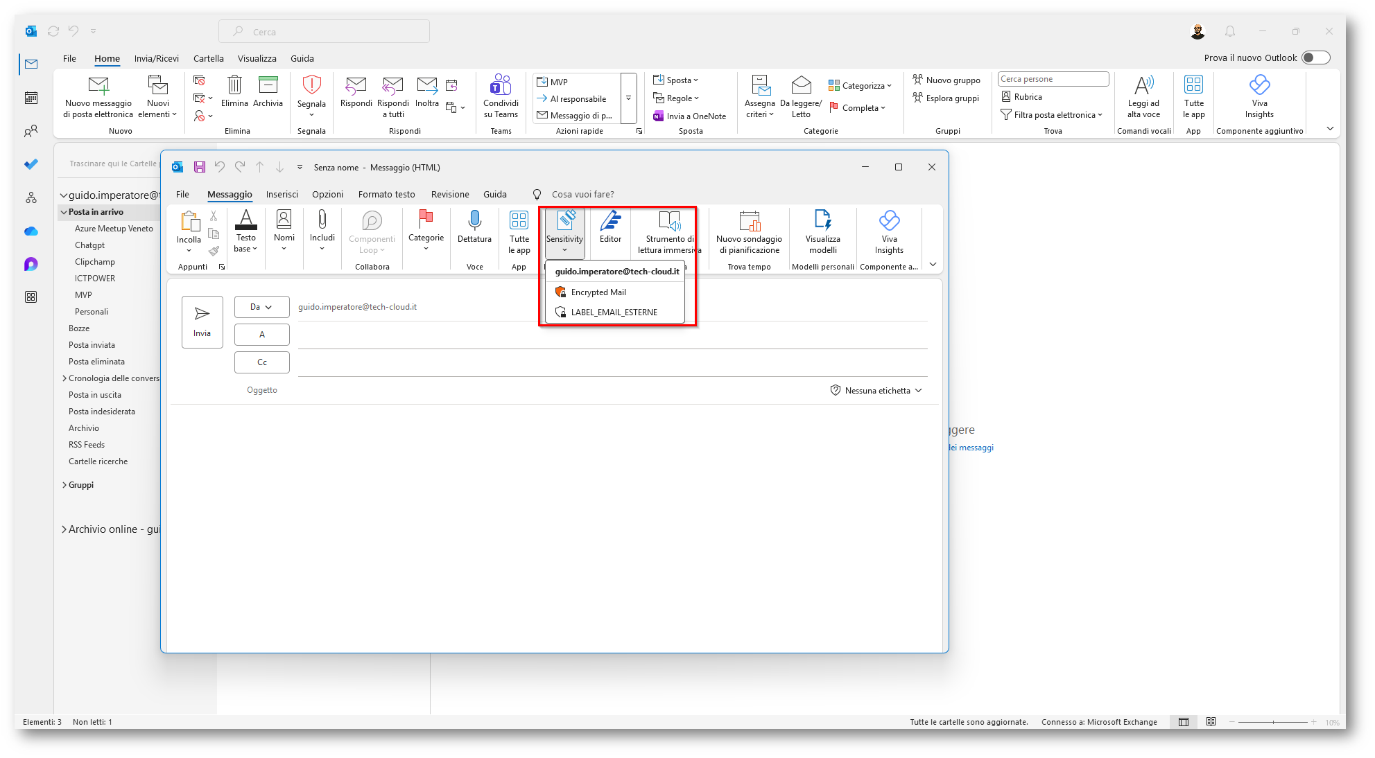 Microsoft Purview: Utilizzare le Sensitivity Label applicate alle e-mail