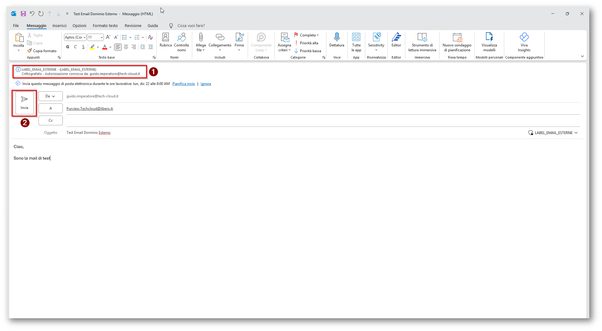 Figura 30: Procedo a scrivere una mail verso dominio libero.it applicando l’etichetta indicata