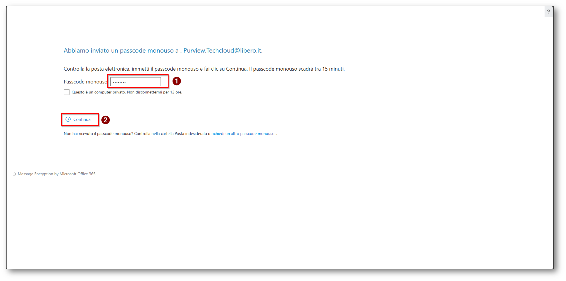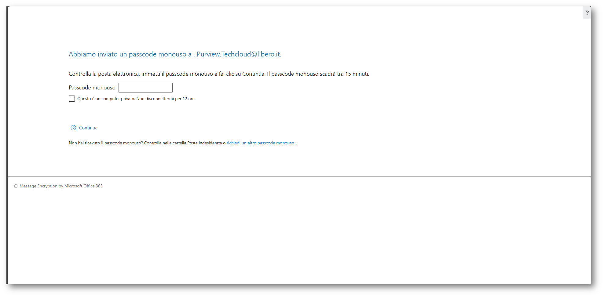 Figura 34: Verrà inviato un codice al destinatario per accedere al messaggio