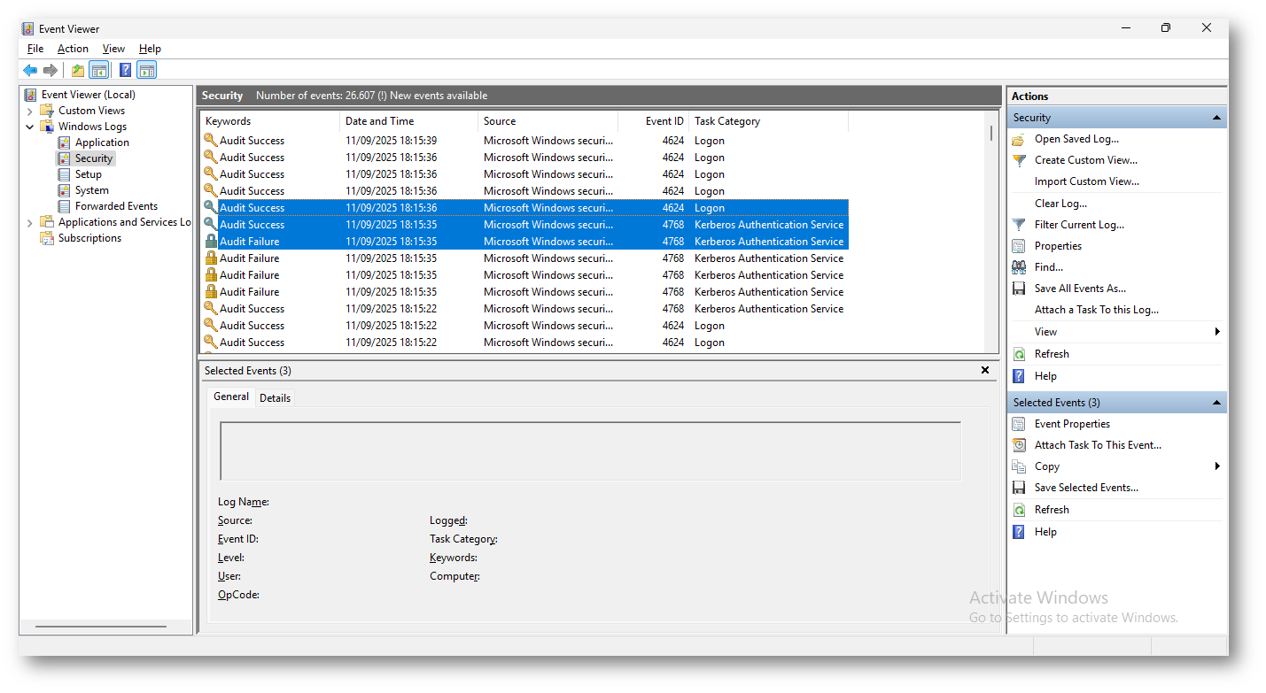• Time sync: assicurati che DC e client siano allineati (NTP). La correlazione 4771→4624 si basa sui timestamp.