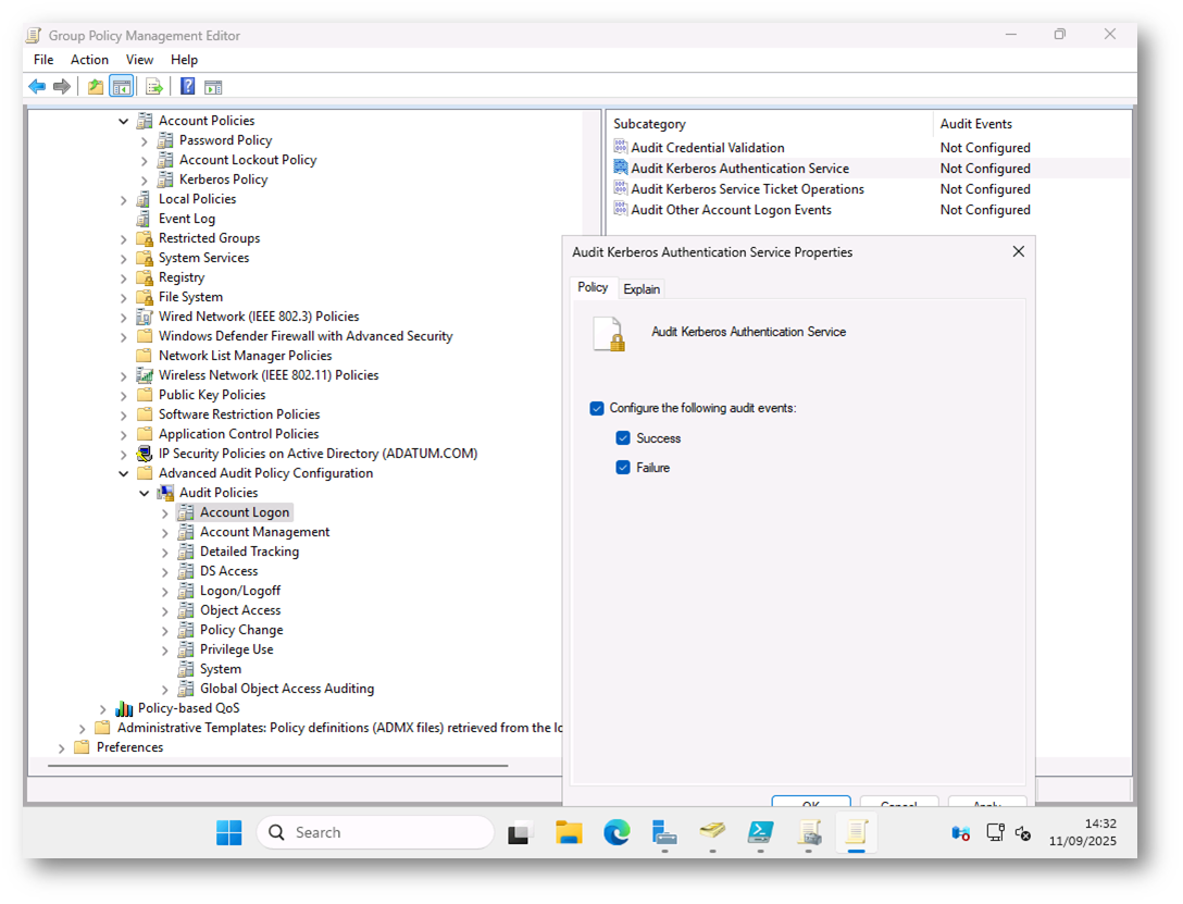 Figura 8: Abilitazione dell’auditing policy “Audit Kerberos Authentication Service”
