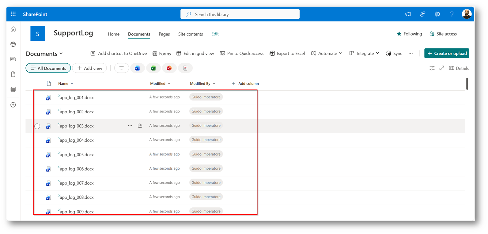 Figura 37: Etichetta applicata correttamente ai file della document library di SharePoint