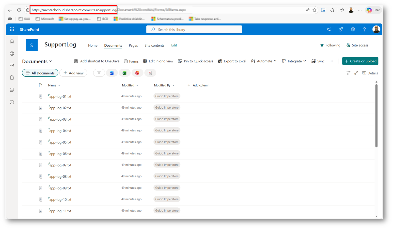 Figure 1: Sito support Log che contiene i log degli applicativi per scambio temporaneo