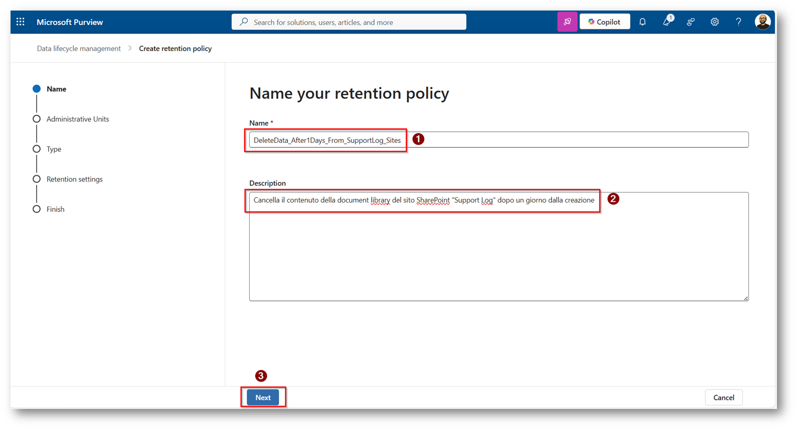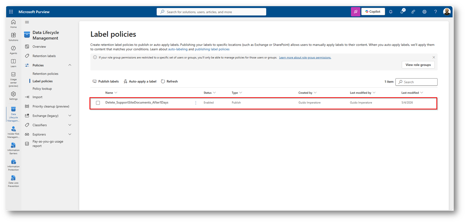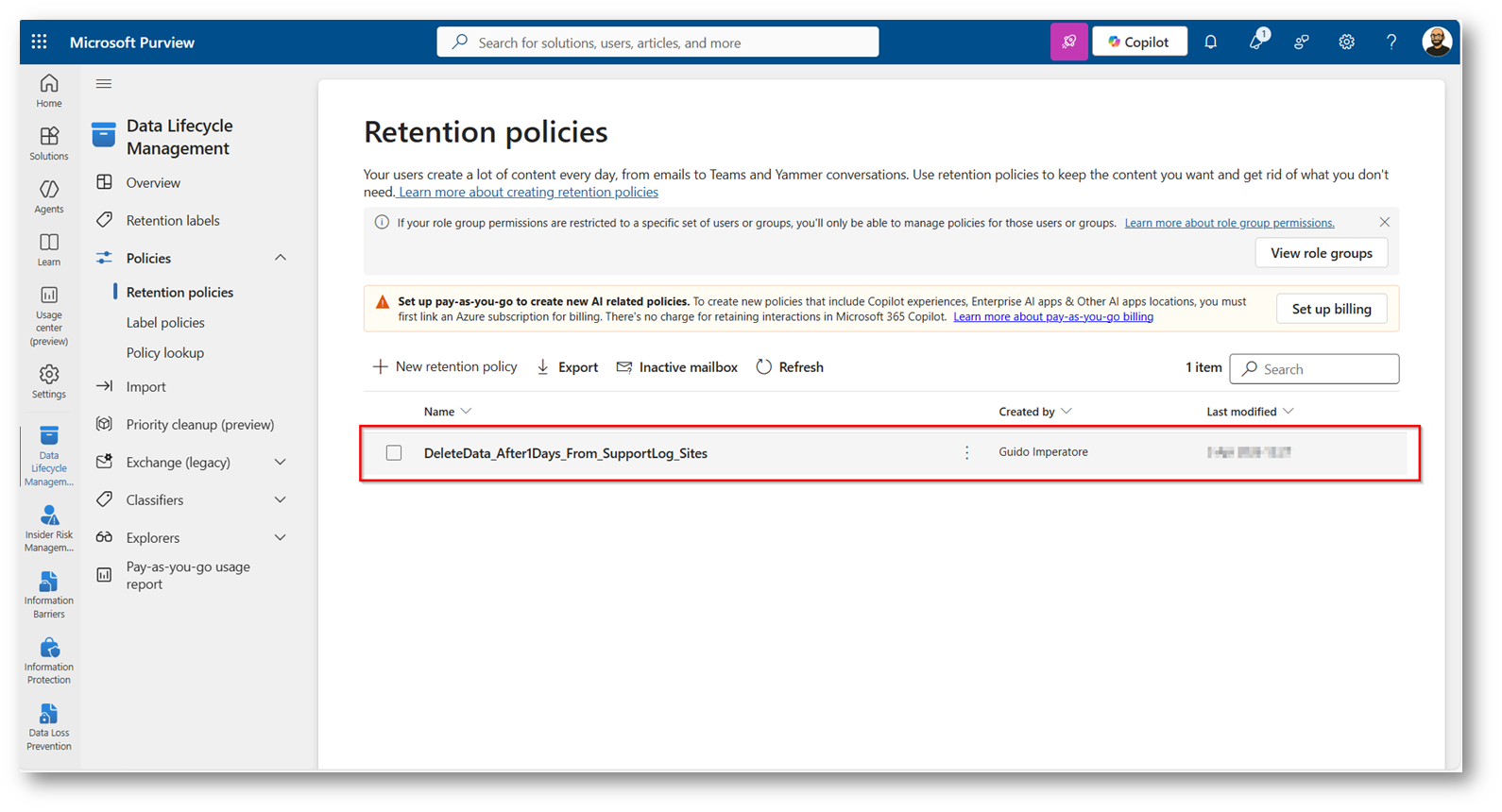 SharePoint come area di scambio temporanea: Retention policy con Microsoft Purview