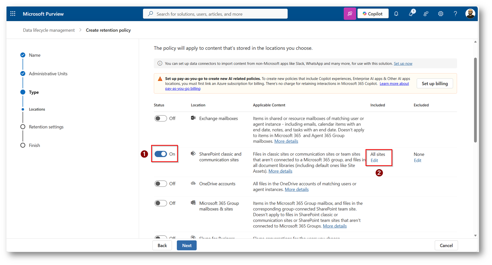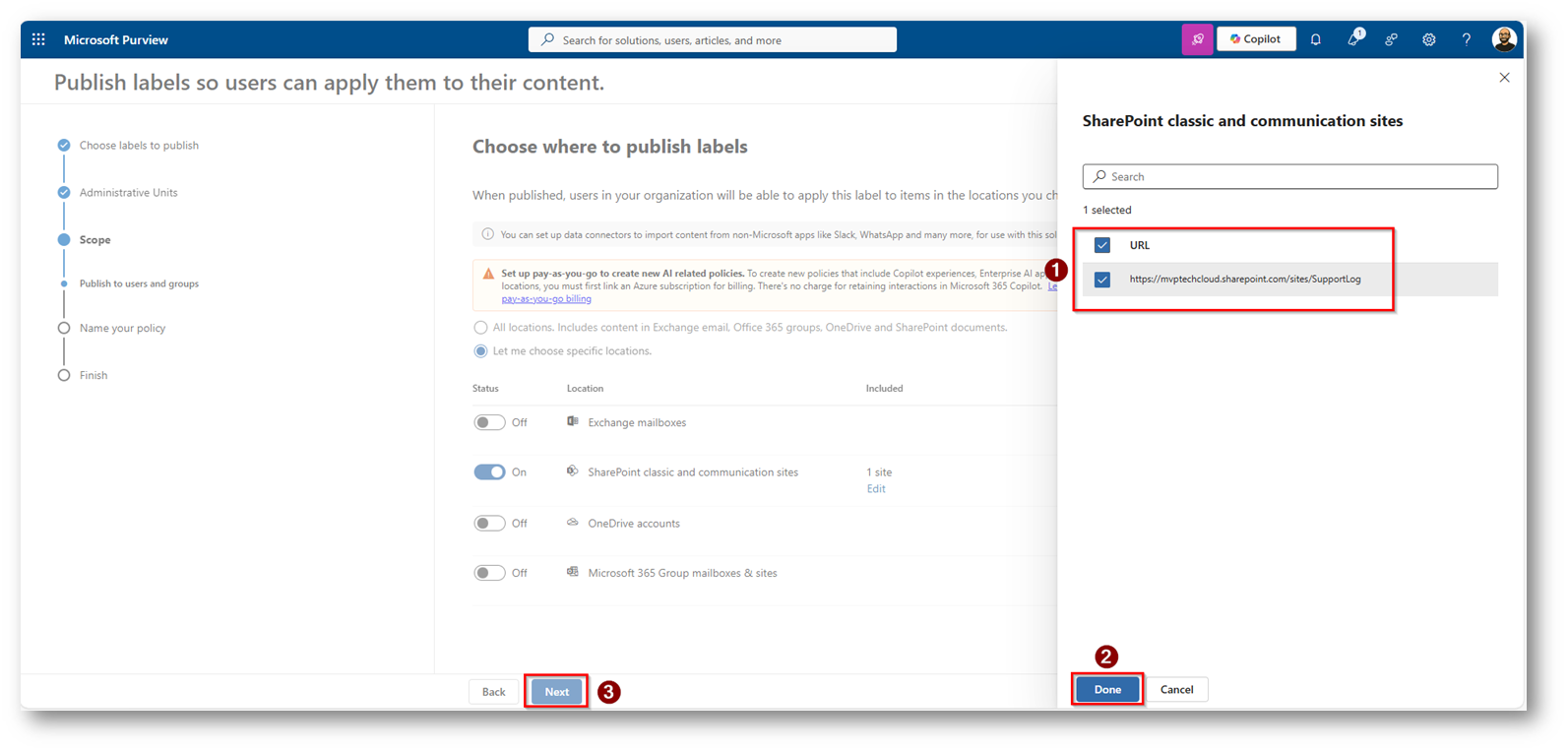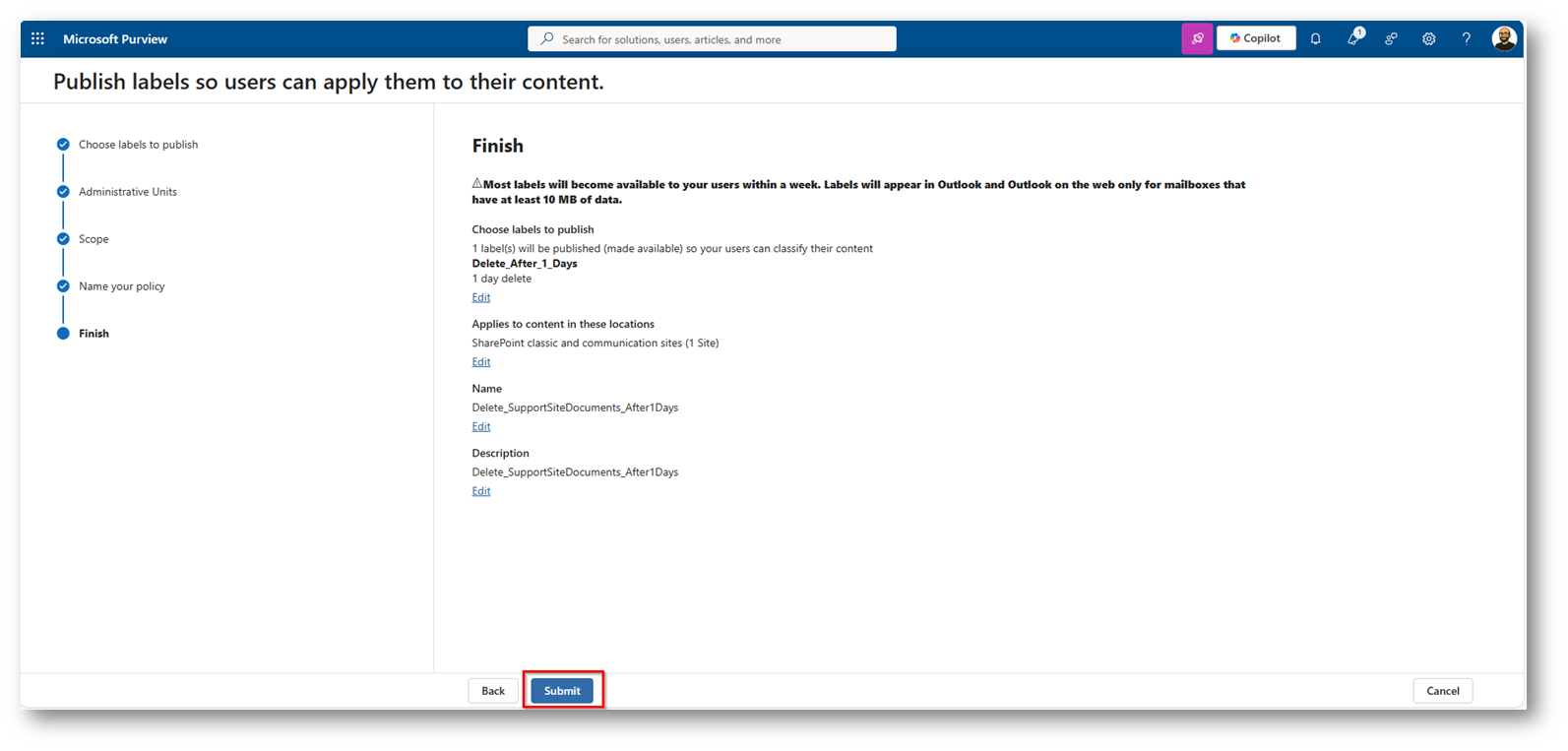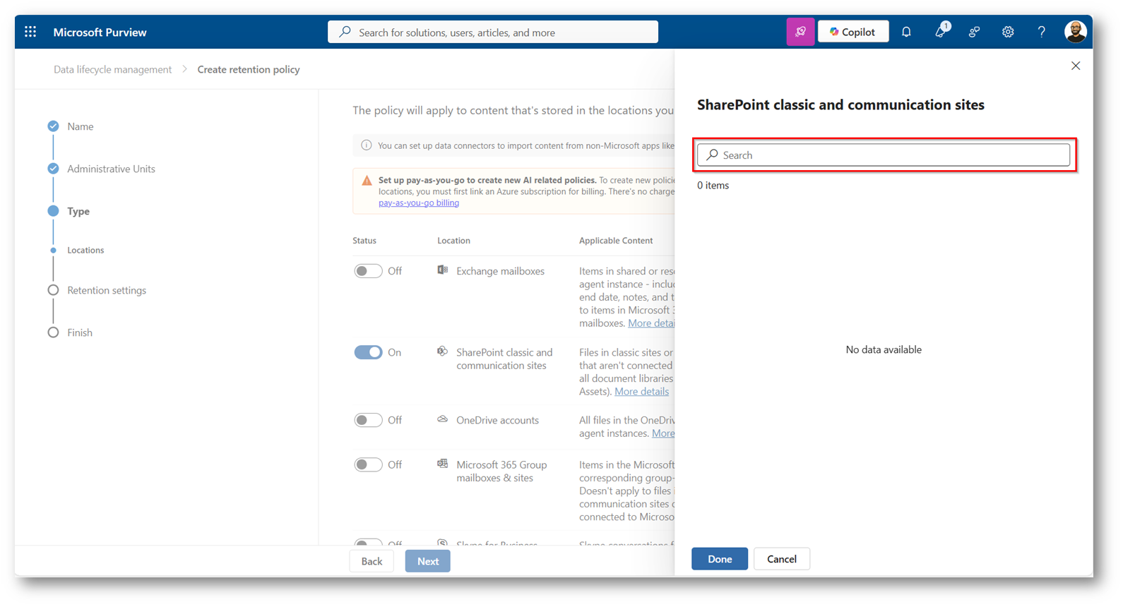 SharePoint come area di scambio temporanea: Retention policy con Microsoft Purview