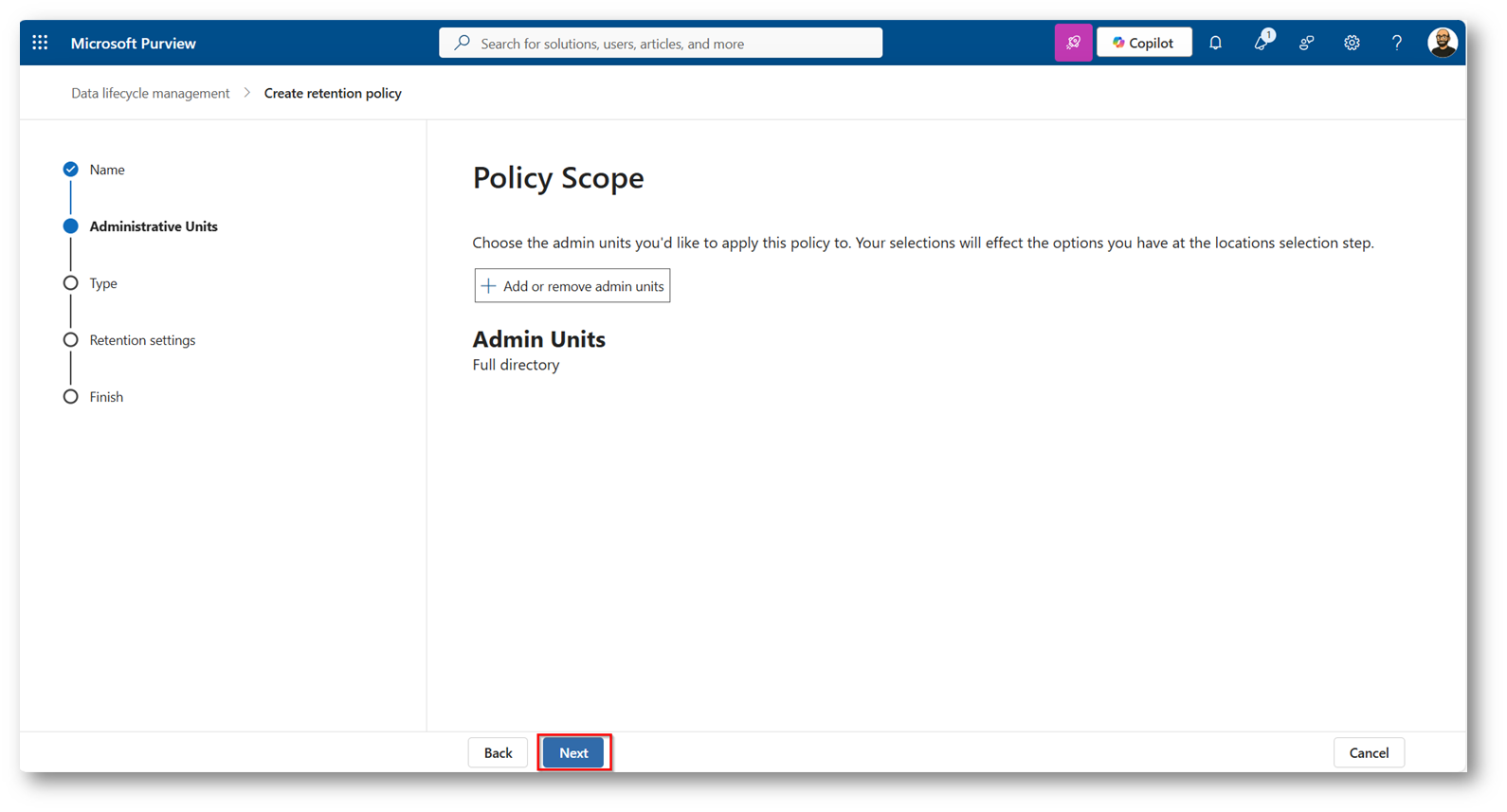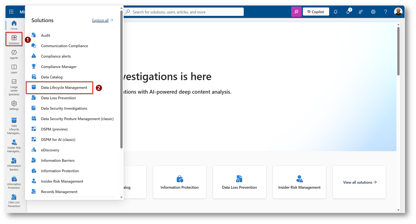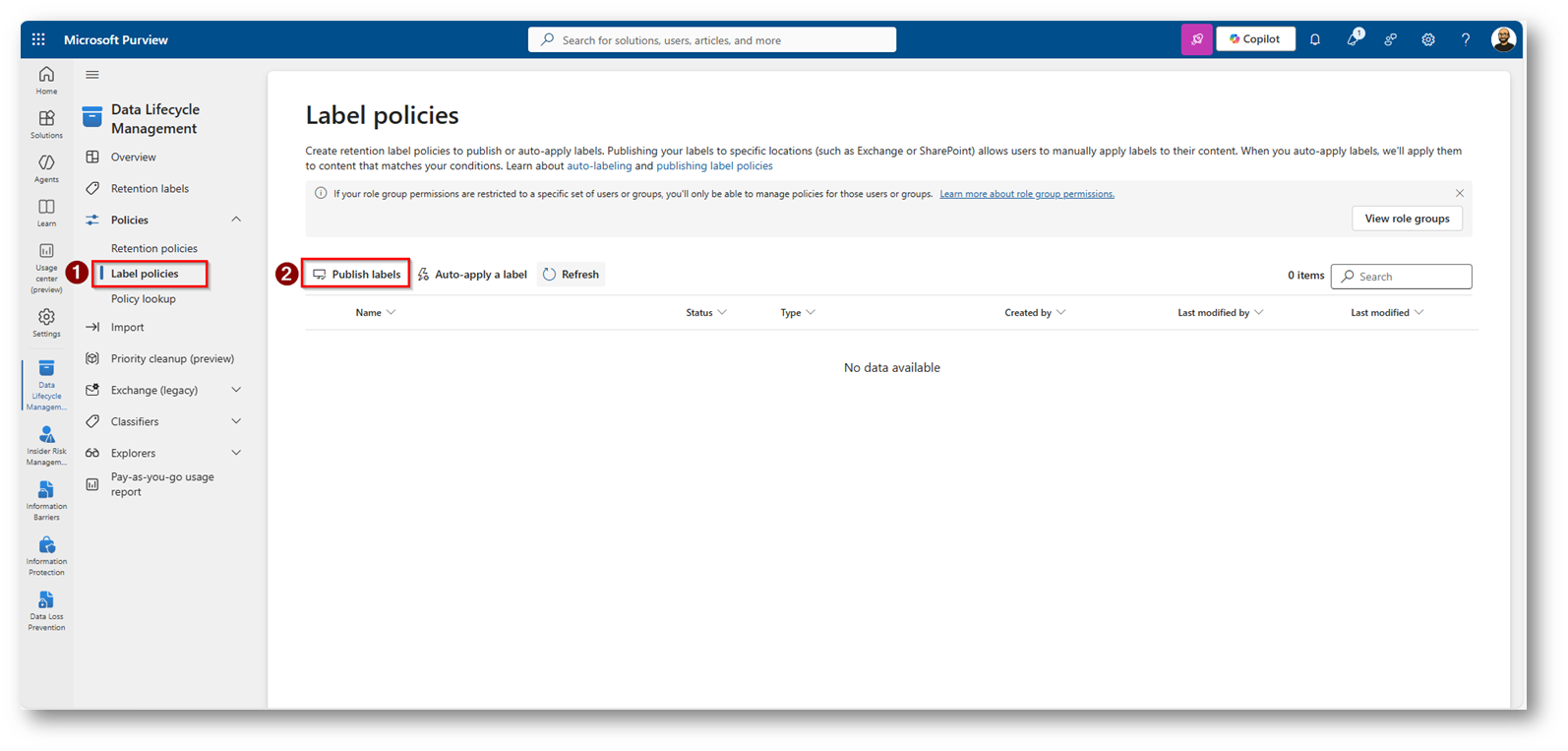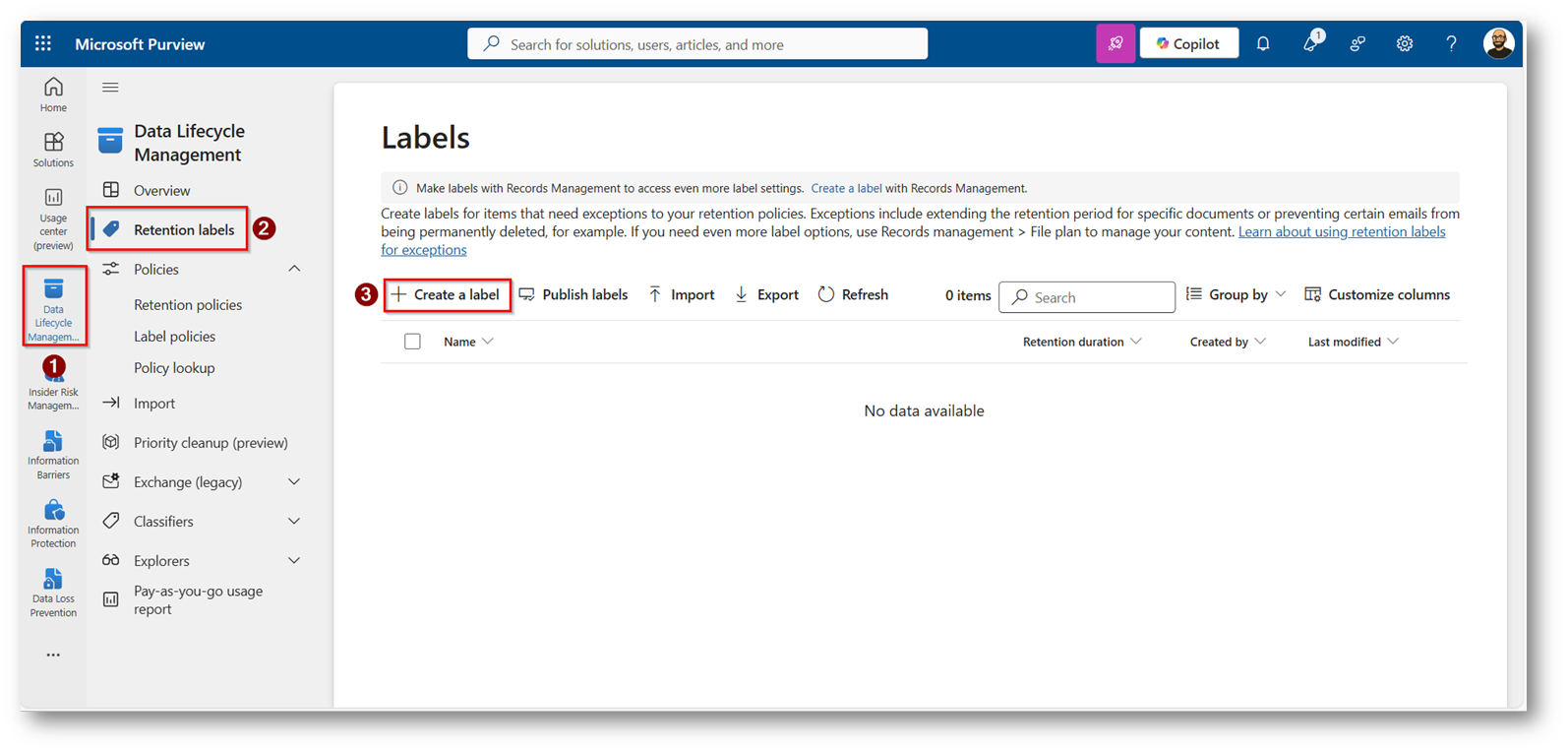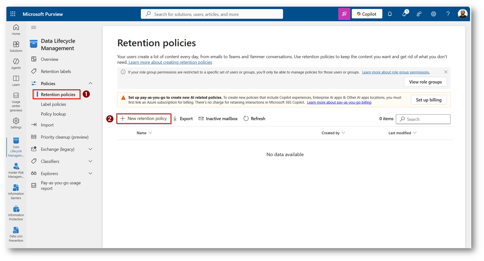 Figure 3: Portale di Microsoft Purview sezione di Data Lifecycle Management