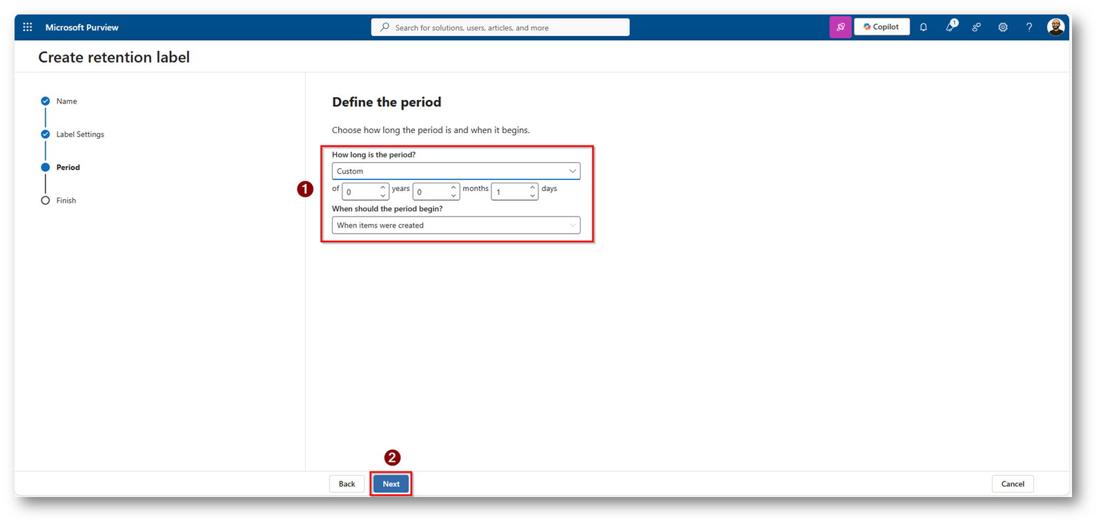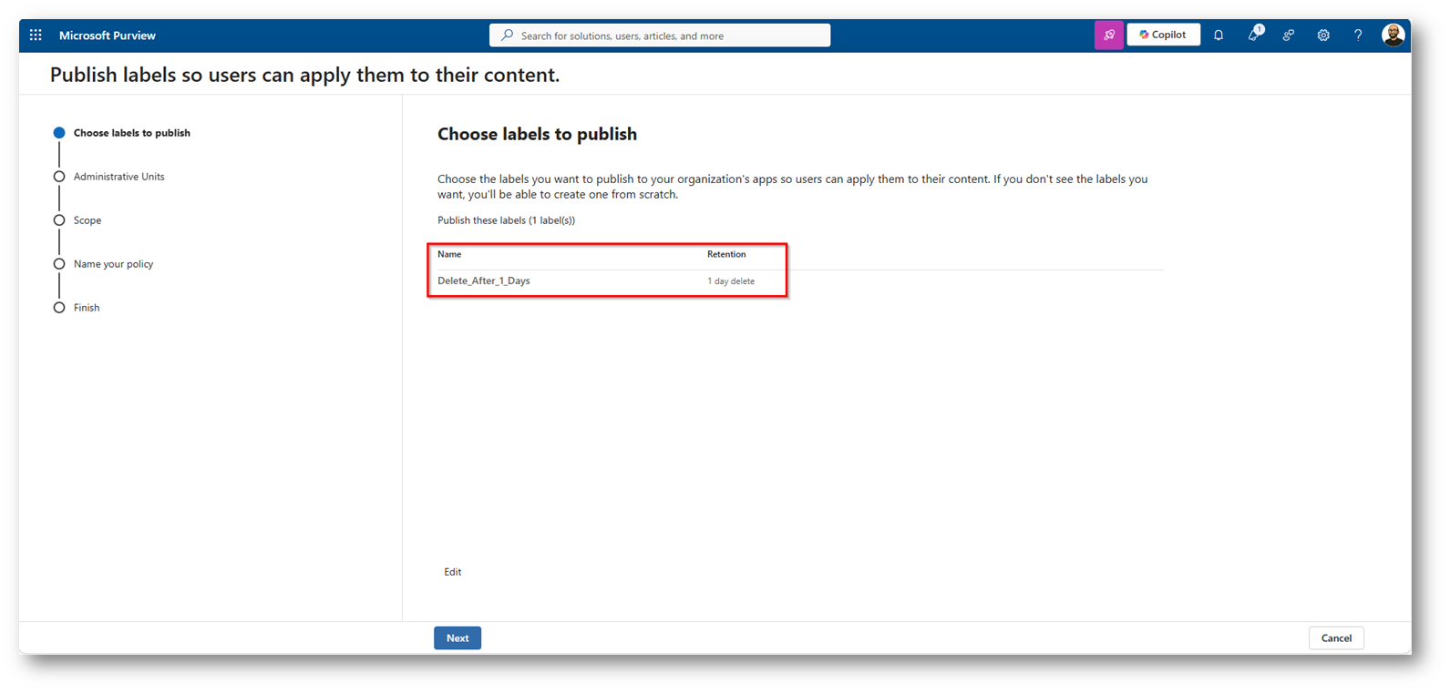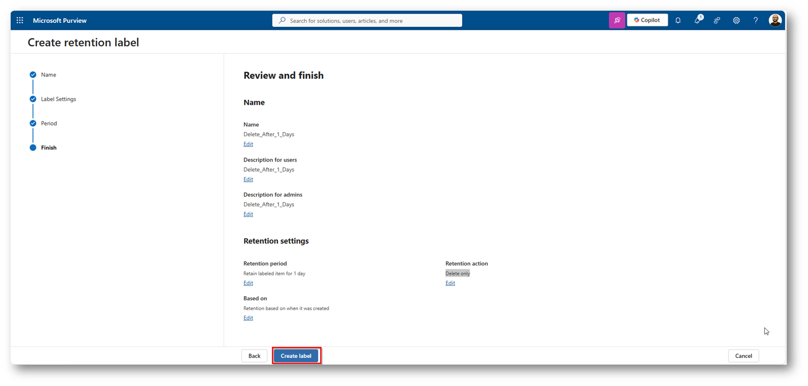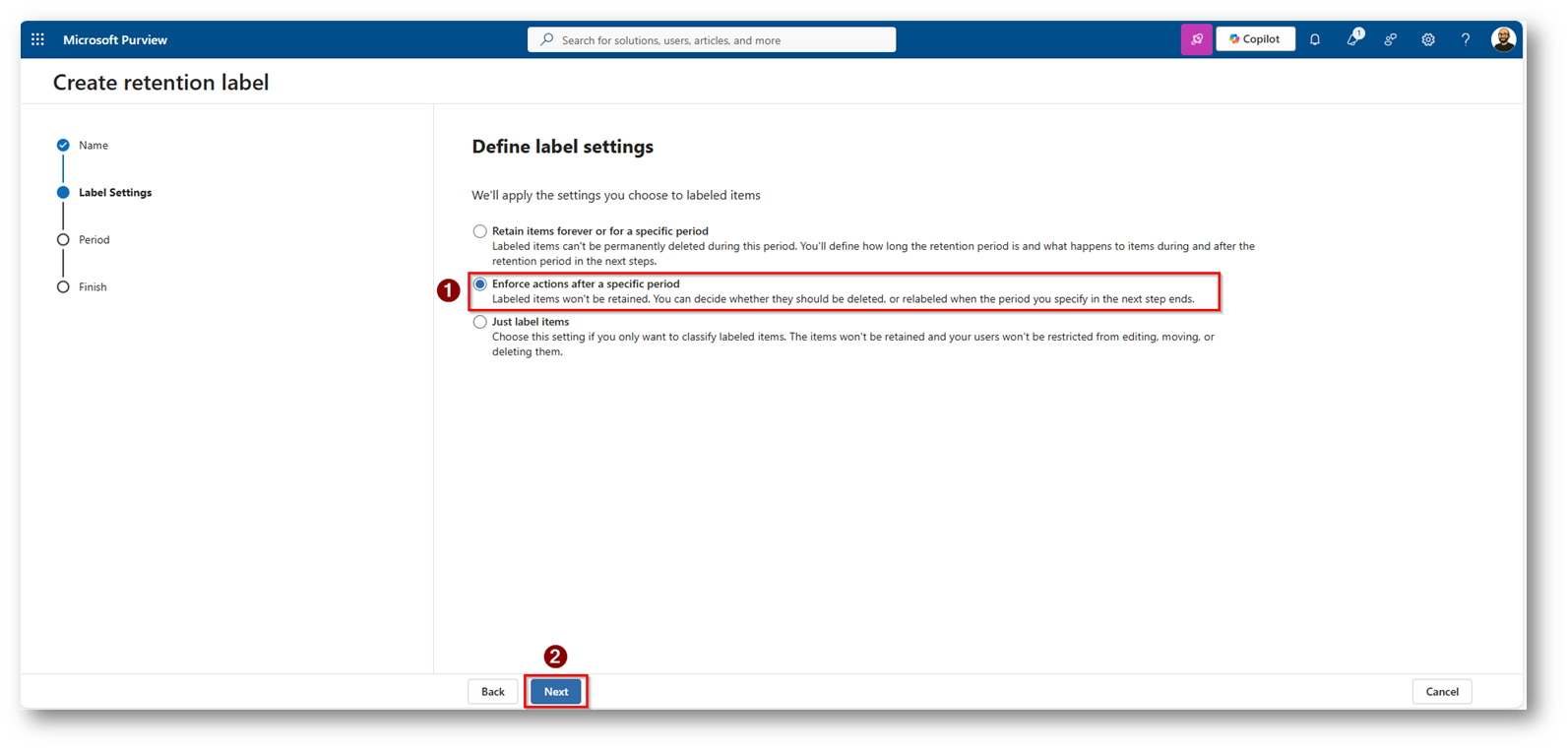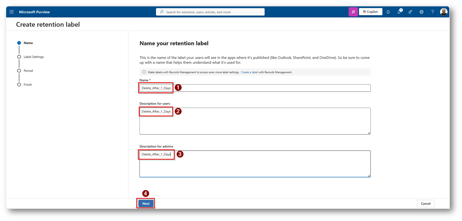 Figura 17: Procediamo a creare una nuova Retention Label
