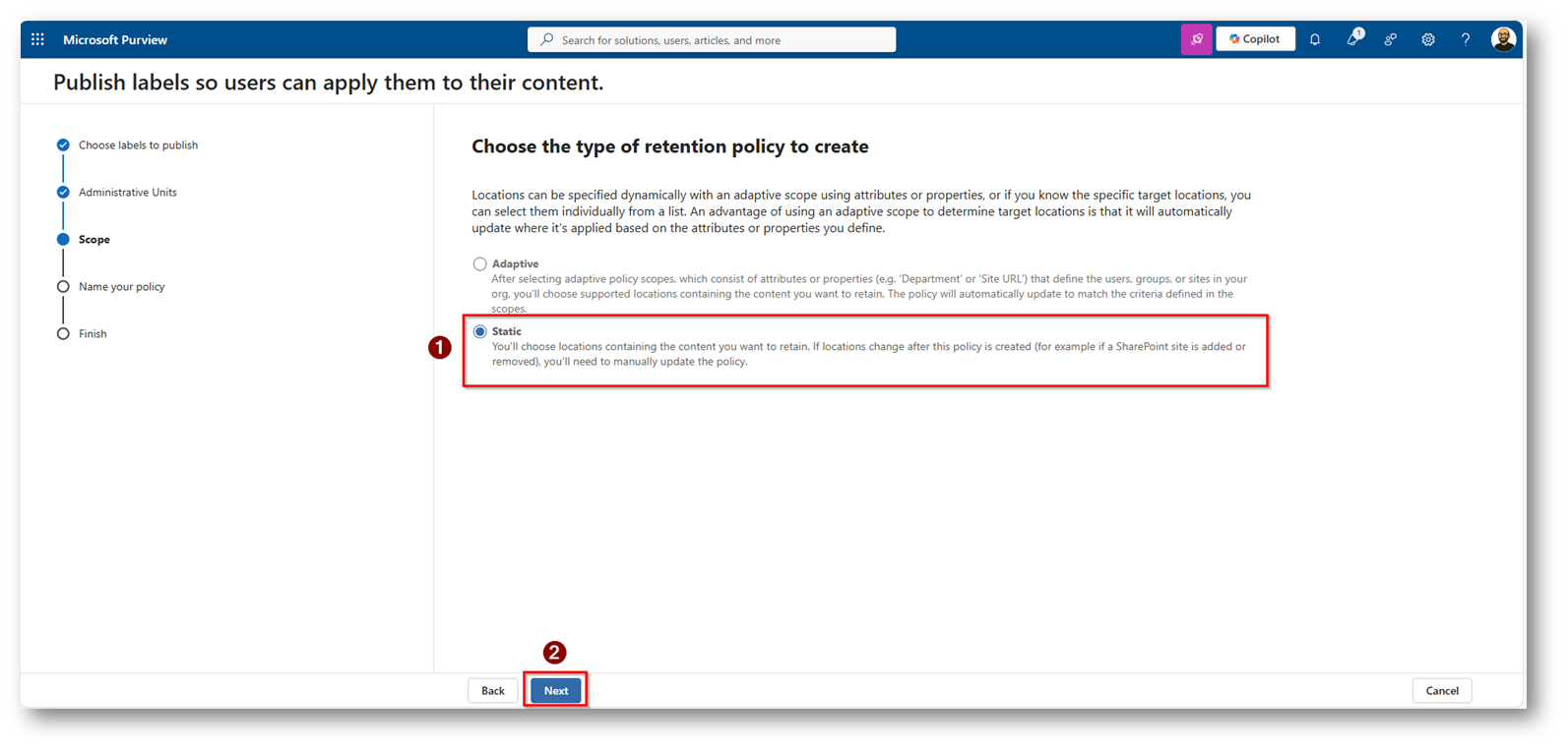 - Uso di un ambito dei criteri adattivi nei criteri dell’etichetta di conservazione