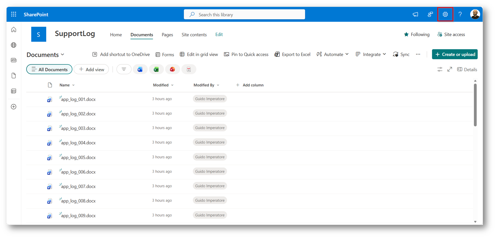 Figura 32: Sito di SharePoint all’interno della document library e selezioniamo impostazioni