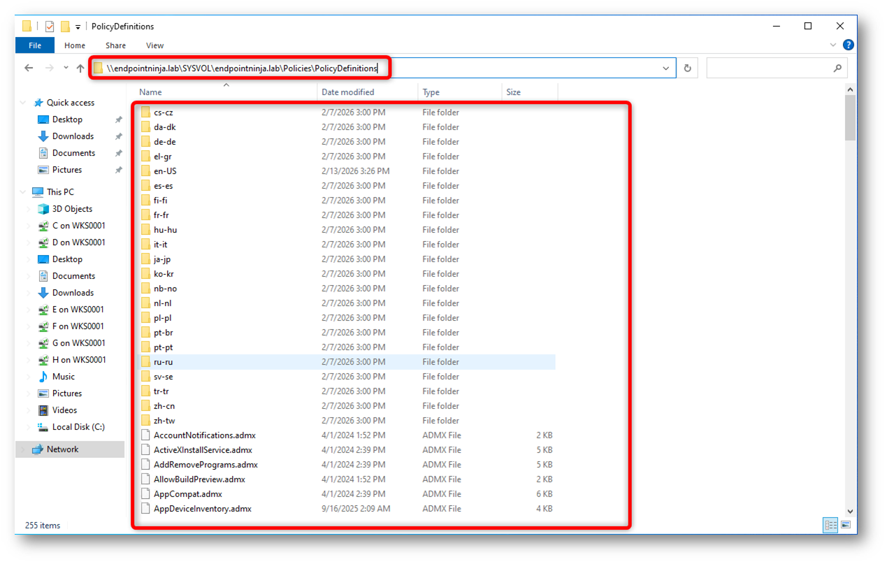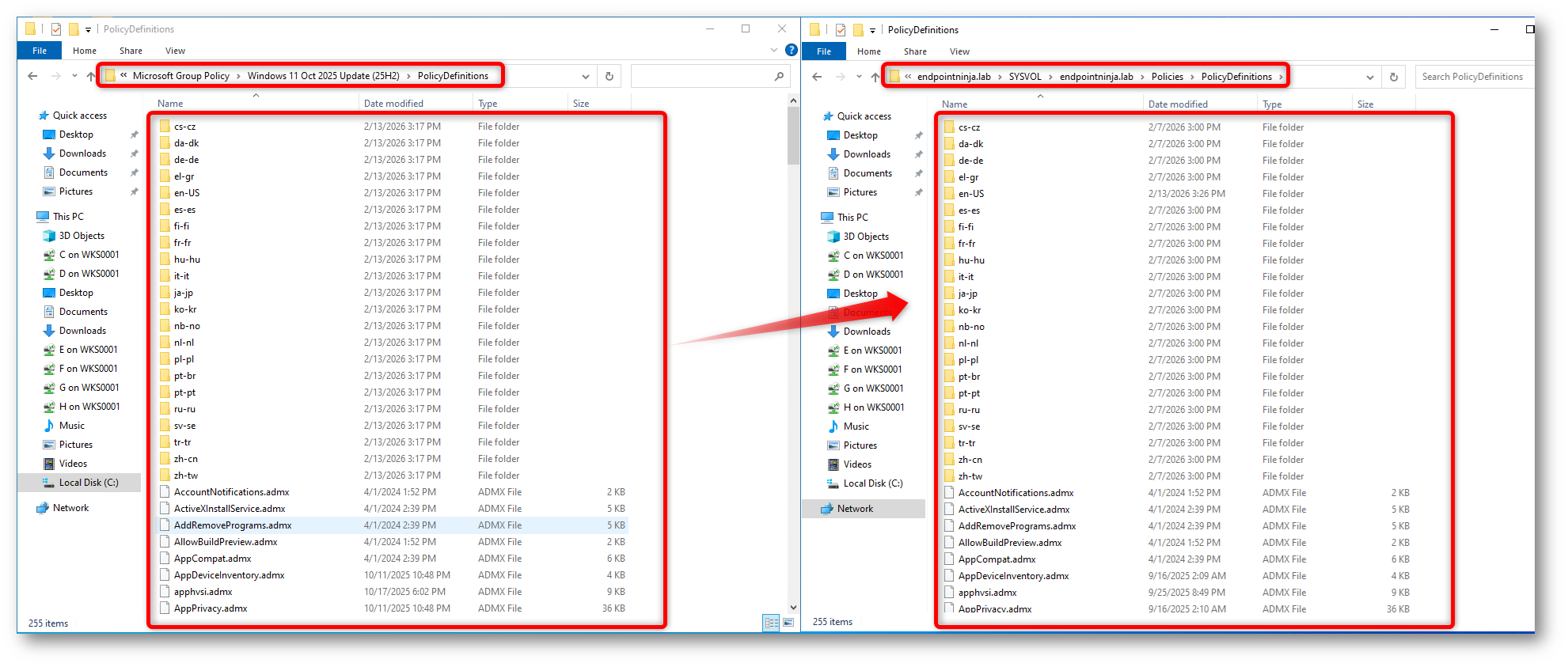 - Se il Central Store non esiste, createlo creando la cartella PolicyDefinitions sotto SYSVOL nel percorso indicato. Se invece esiste già e volete gestire l’aggiornamento in modo ancora più safe, potete anche optare per l’utilizzo di una cartella versionata (ad esempio PolicyDefinitions-25H2) come approccio organizzativo