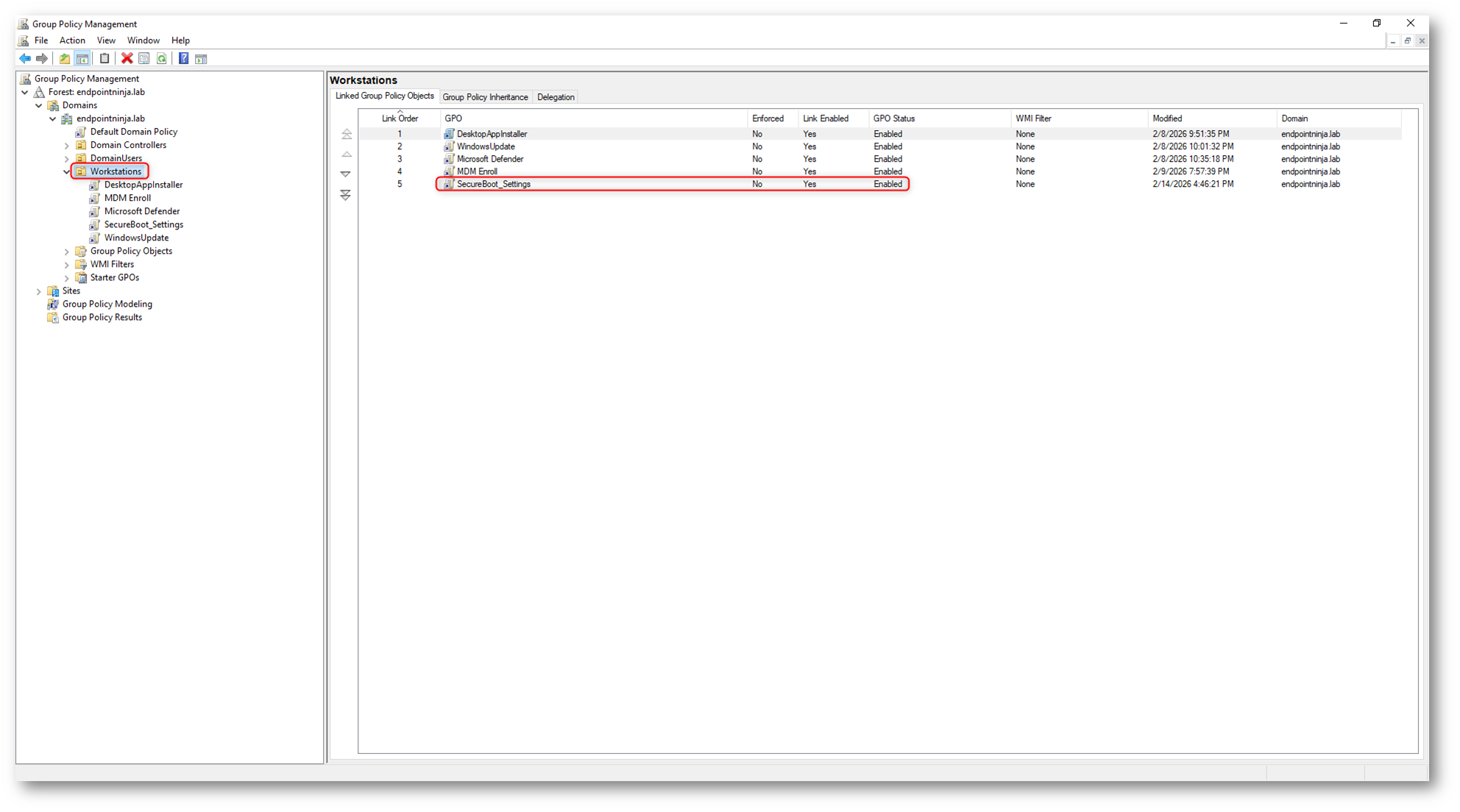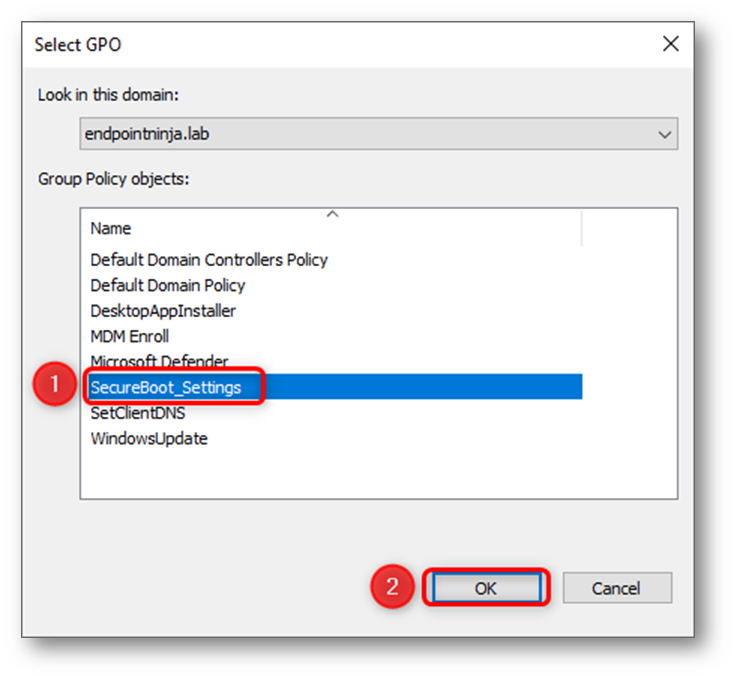 Figura 14: Creazione GPO per Secure Boot settings – Parte 2