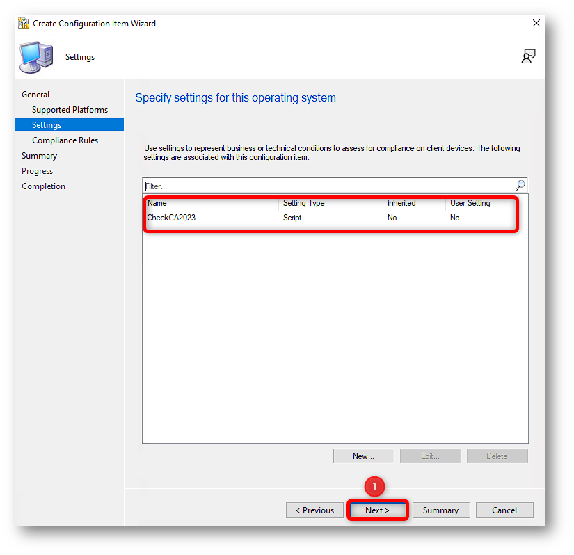 Figura 32: Creazione Configuration Item in SCCM – Parte 6