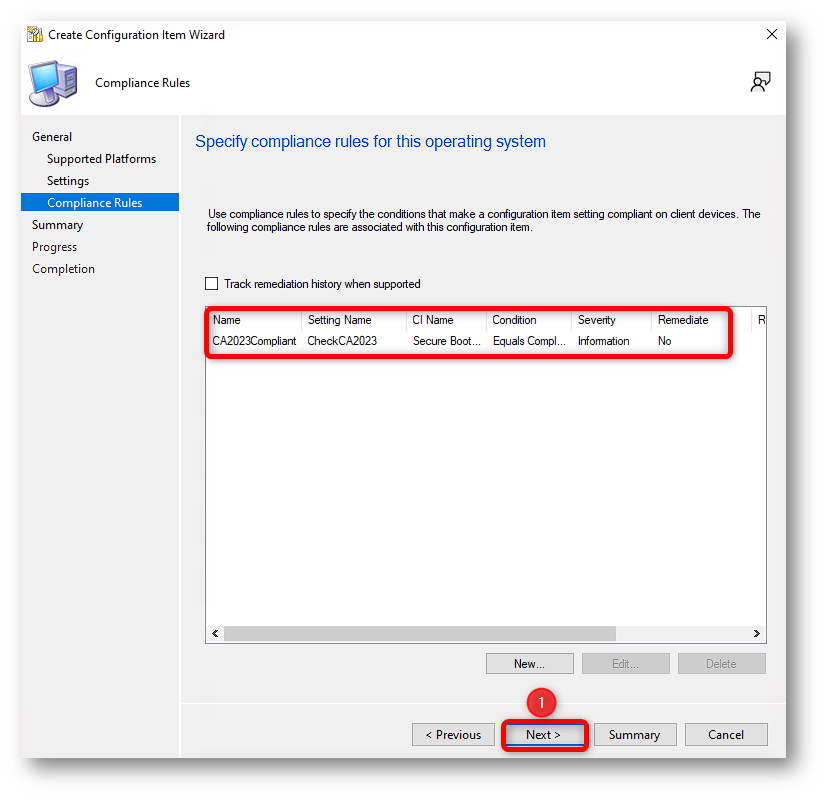 Il nostro Configuration Item è ora pronto. Nel prossimo capitolo creeremo la Configuration Baseline che includerà questo CI e la distribuiremo alla collection pilota per misurare la compliance e costruire collection dinamiche utili per monitoraggio e remediation.