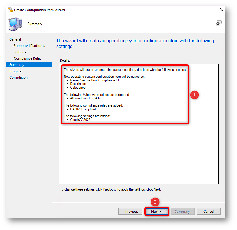Figura 40: Creazione Configuration Item in SCCM – Parte 14