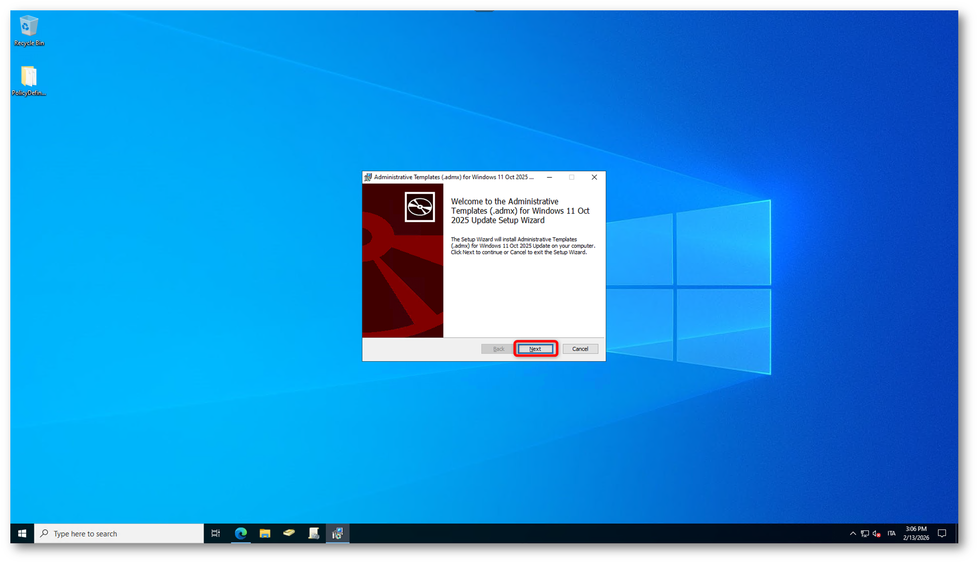 Figura 4: Installazione ADMX per Windows Client – Parte 1