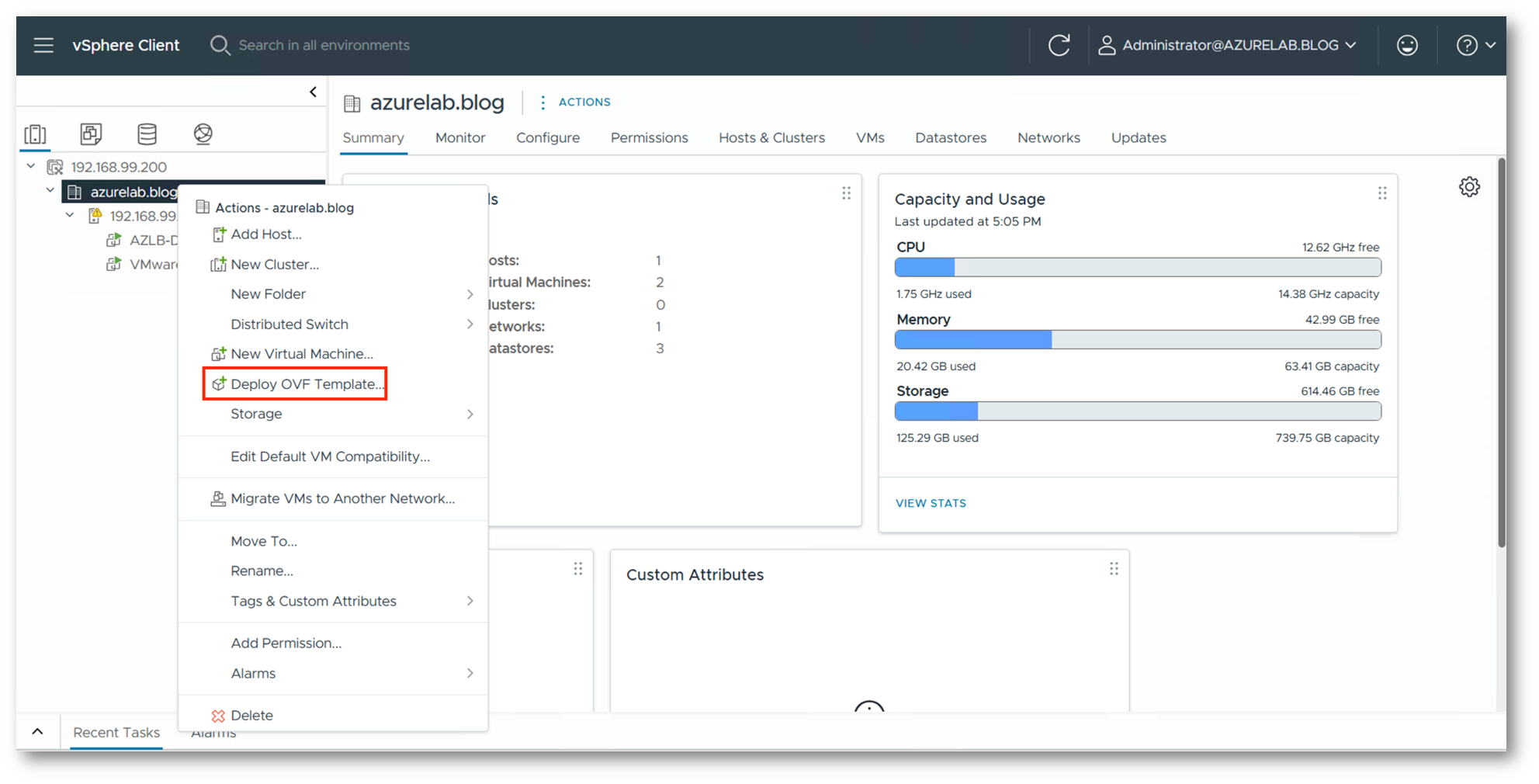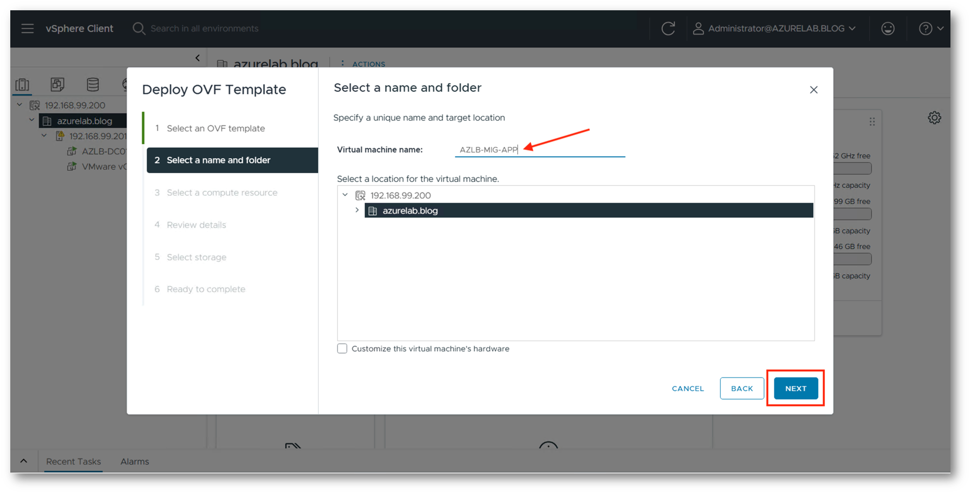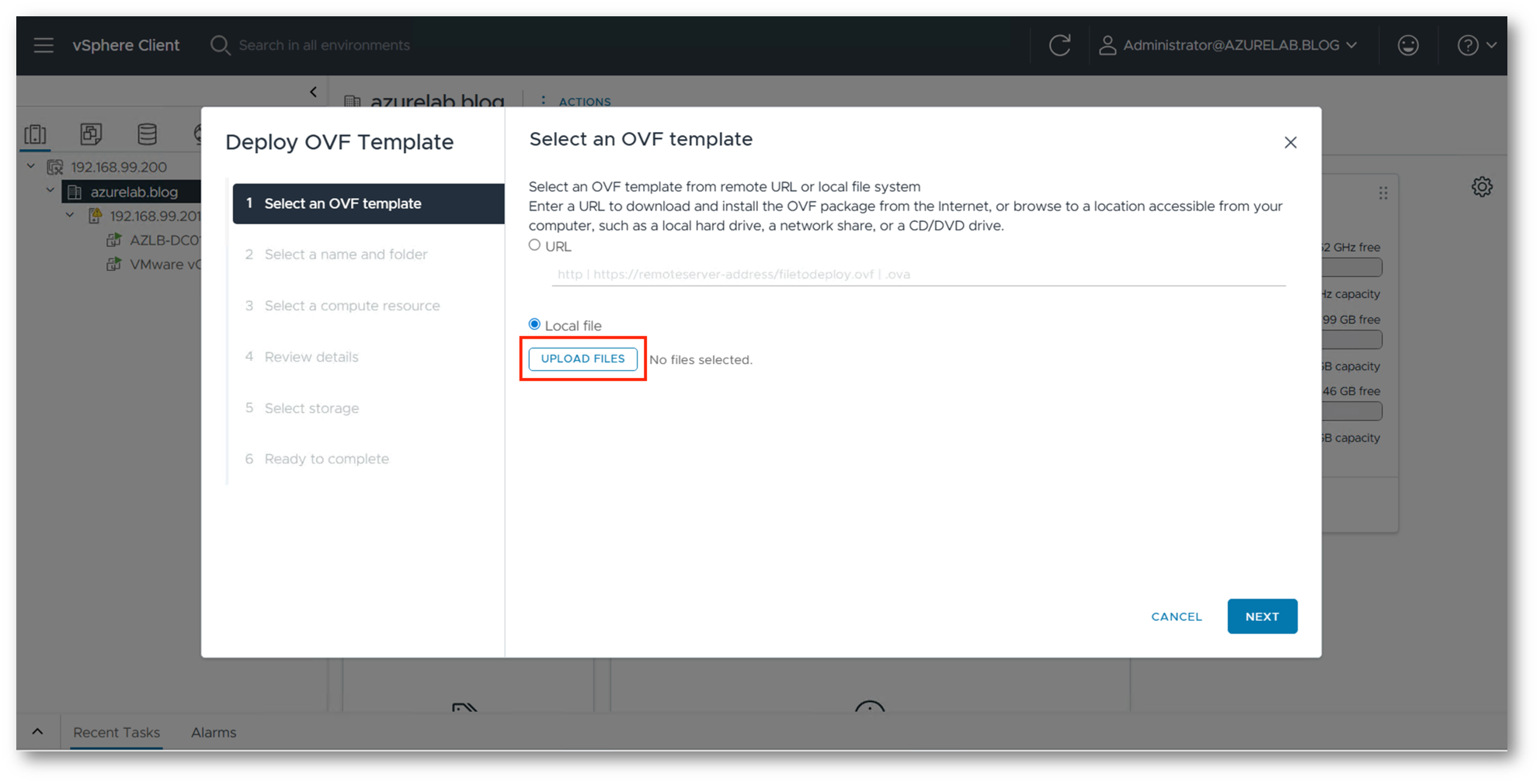 Accediamo ora al vCenter dell’infrastruttura da migrare e procediamo al deploy della VM partendo dal template appena scaricato.