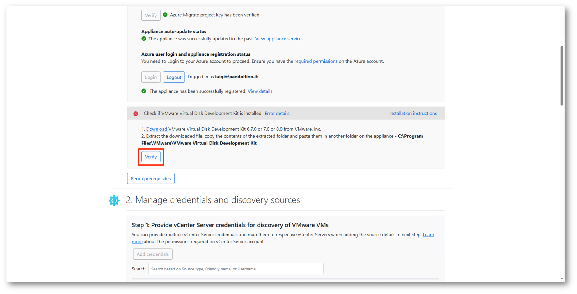 - Connettere l’infrastruttura VMware locale al servizio di migrazione.