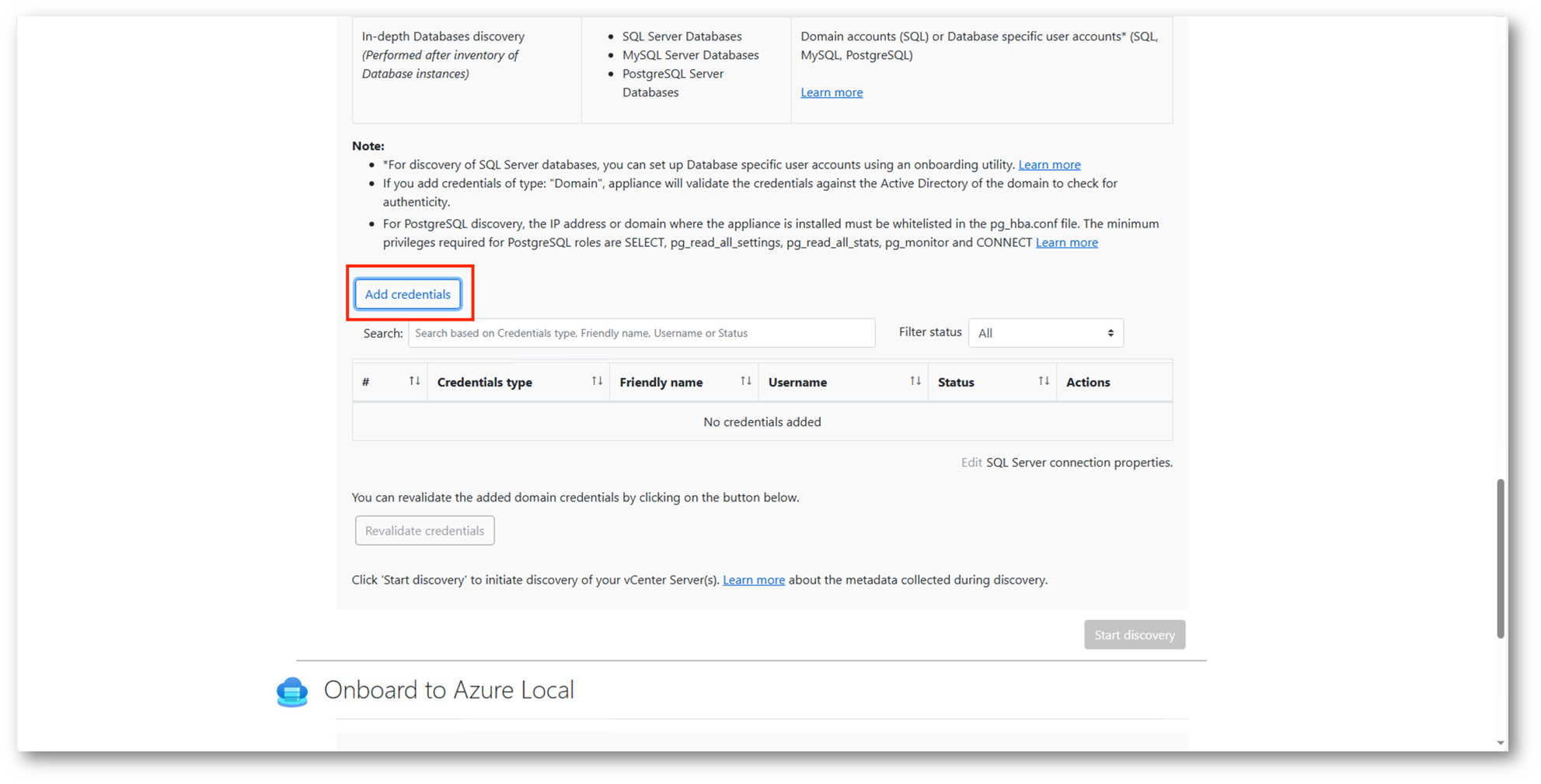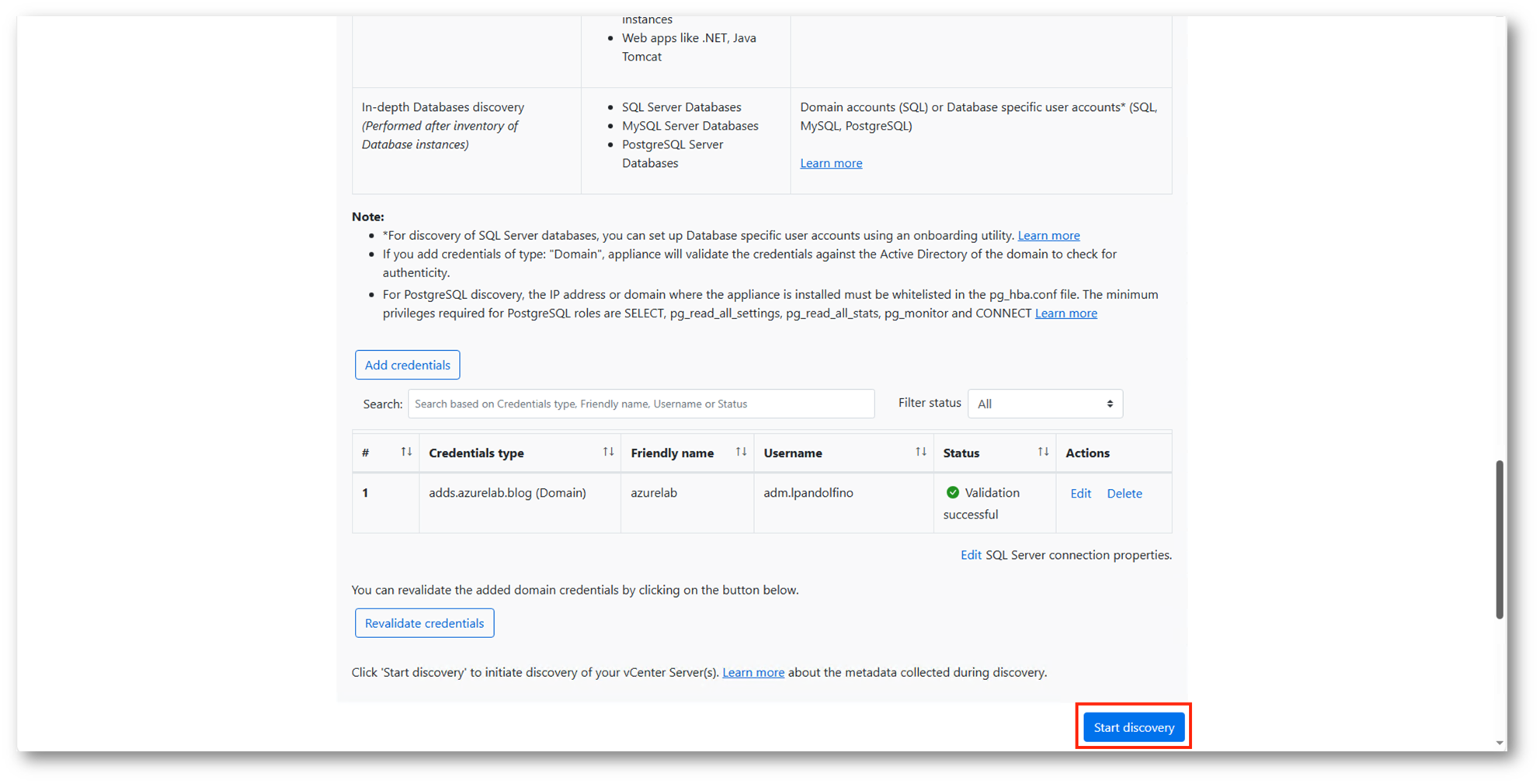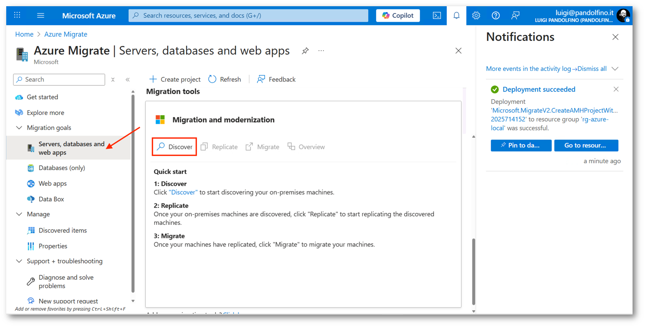 Inserite e validate le credenziali possiamo procedere al processo di Discovery, che ci permetterà di verificare quali workload potremo migrare in Azure Local.