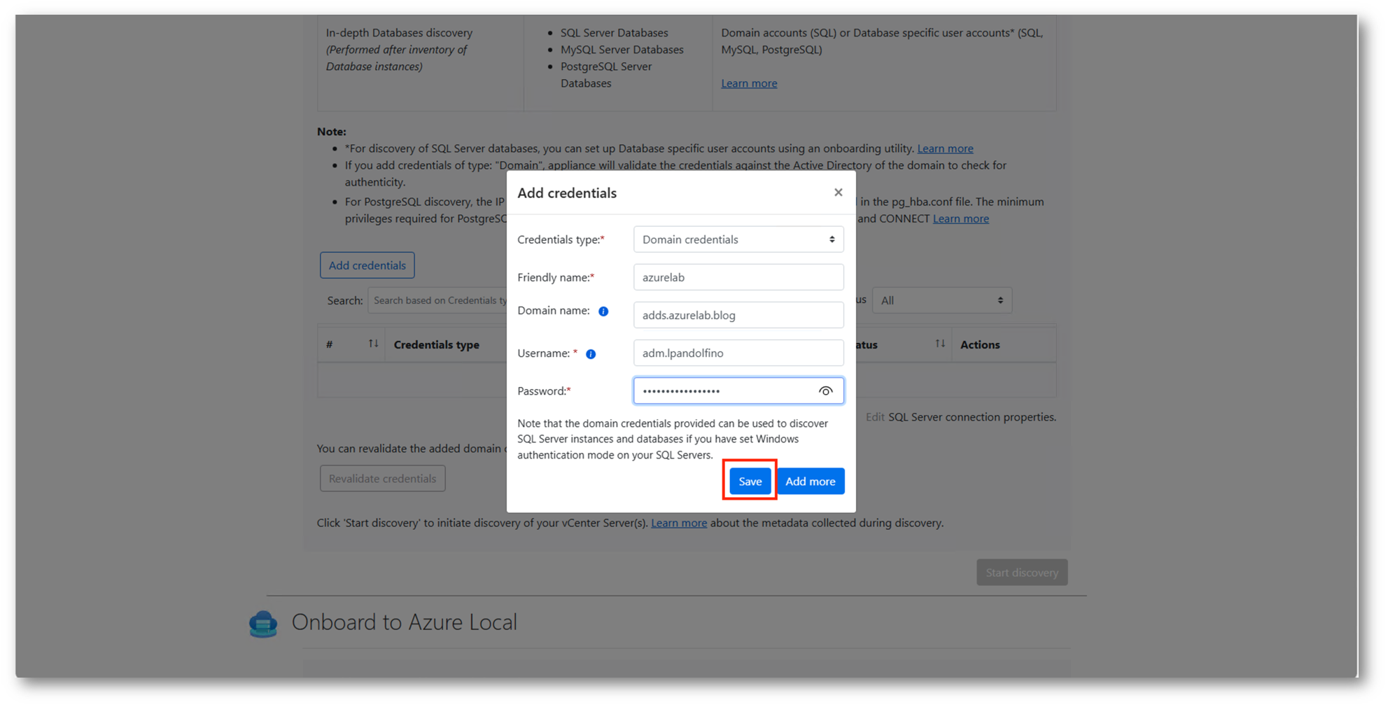 Figura 50: Inserimento credenziali Azure Local