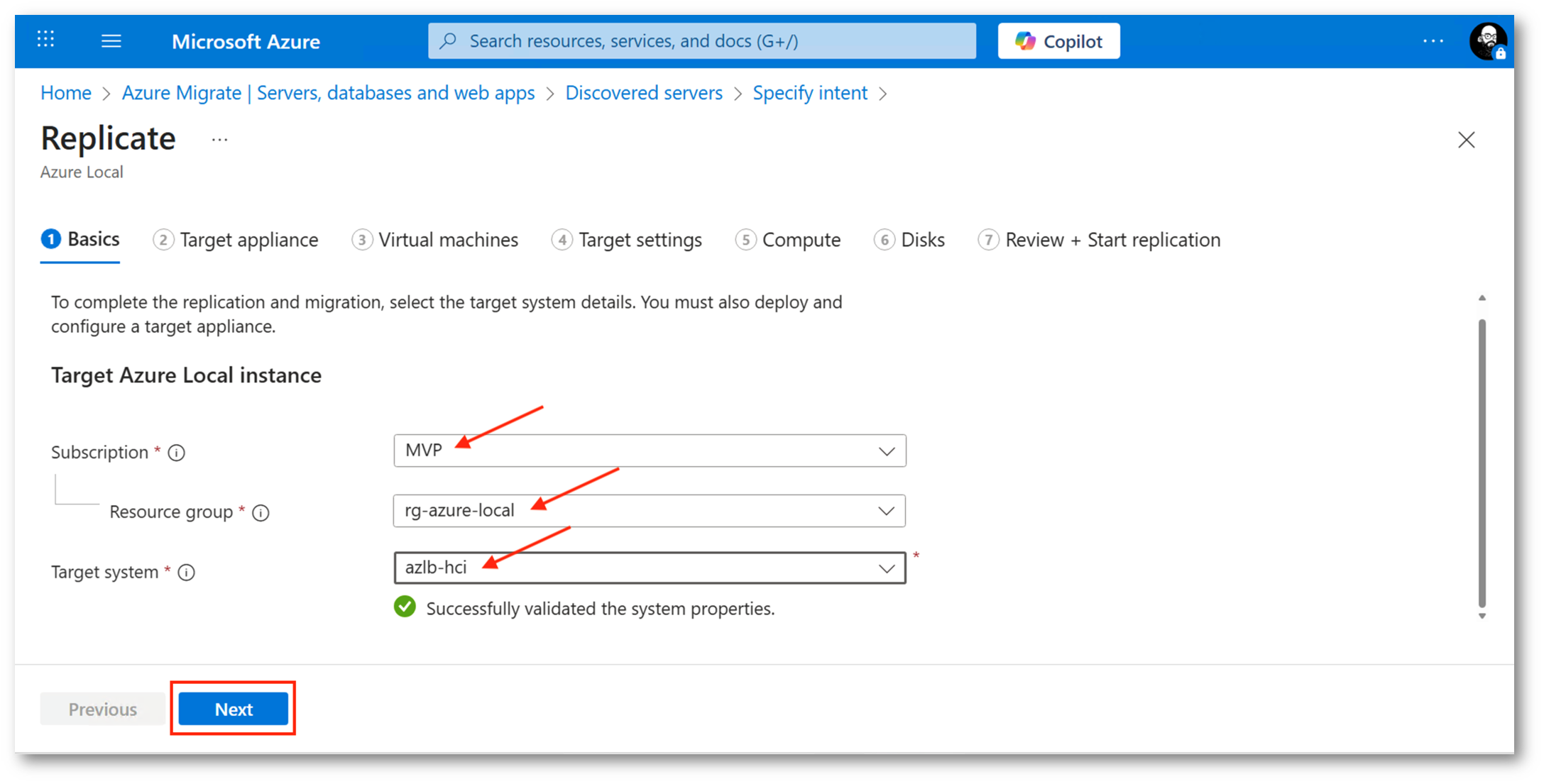 Figura 39: Selezione sistema target (Azure Local)