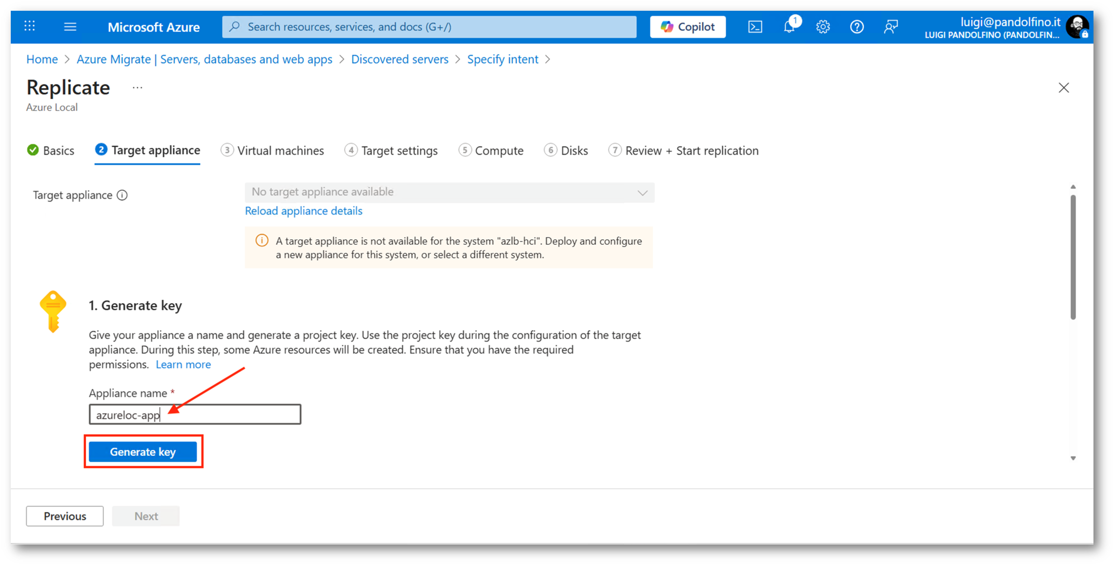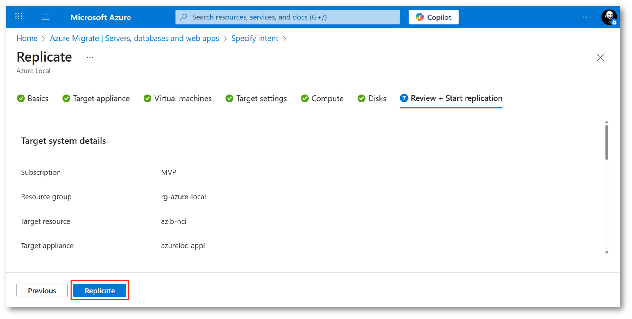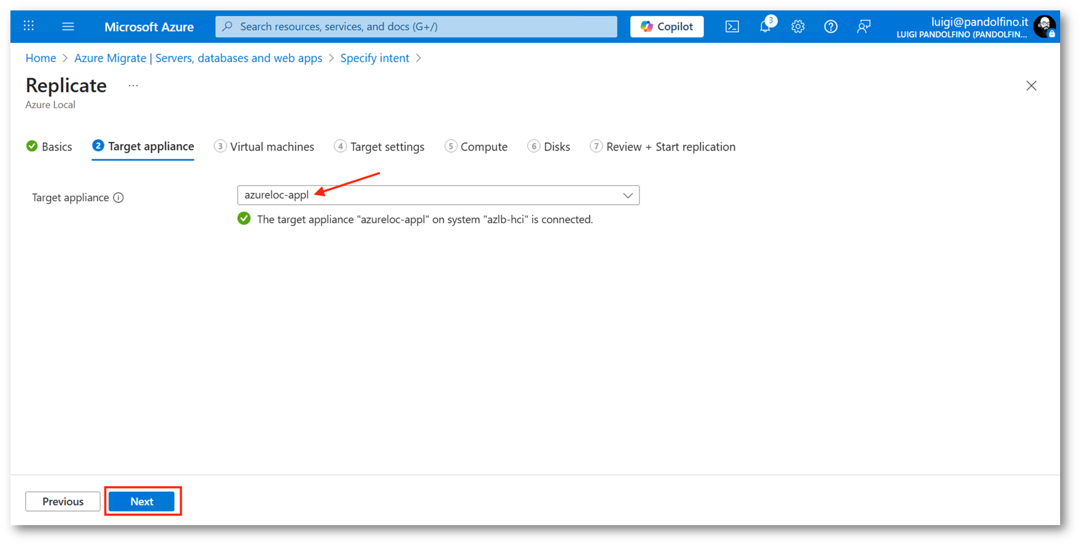 A questo punto non ci resta che inserire le credenziali della nostra infrastruttura Azure Local e la configurazione della appliance Azure Migrate target sarà completa, potremo, quindi, tornare nell’Azure Portal per iniziare il processo di replica e, eventualmente, avviare la migrazione.