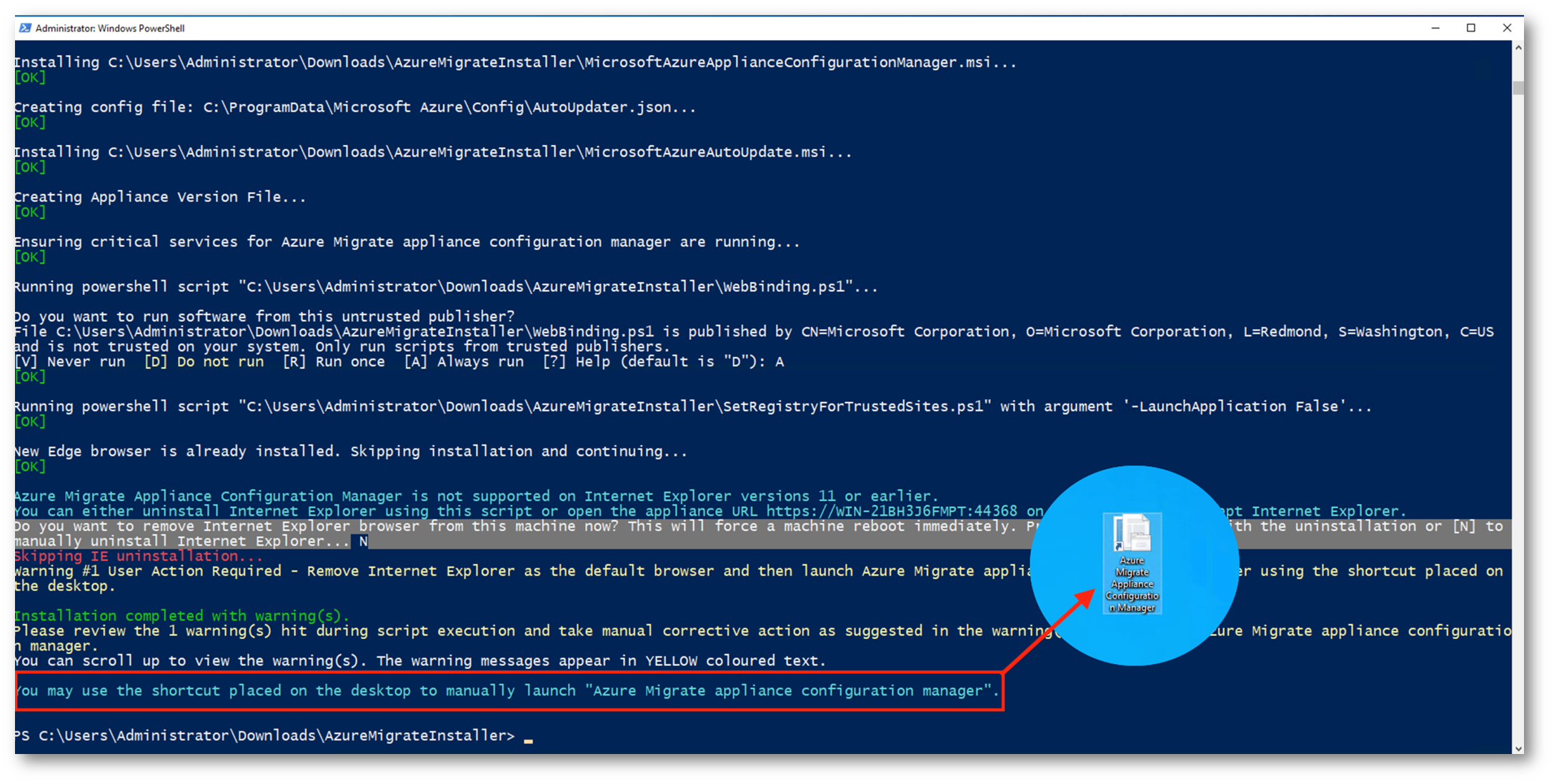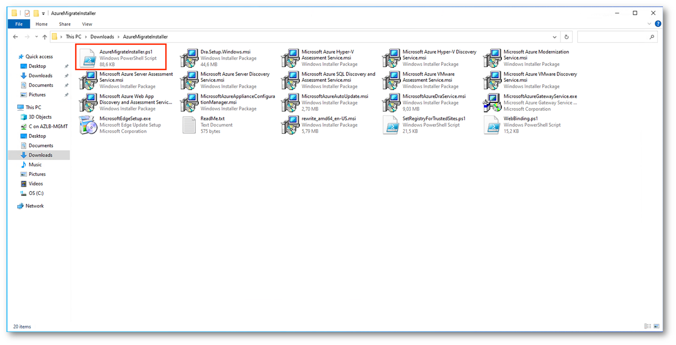 Figura 42: Contenuto file AzureMigrateInstaller.zip