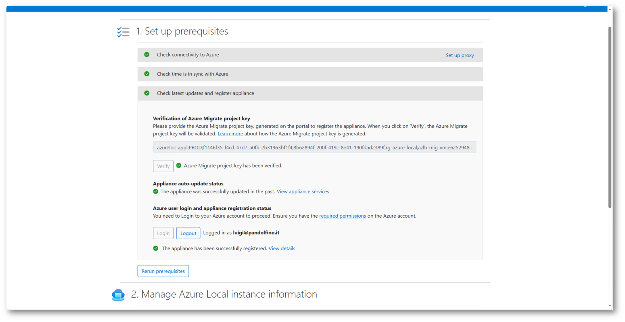 Verificata la chiave e terminato il processo di update, eseguiremo il comando “Rerun Prerequisites” per confermare che tutto sia andato a buon fine.