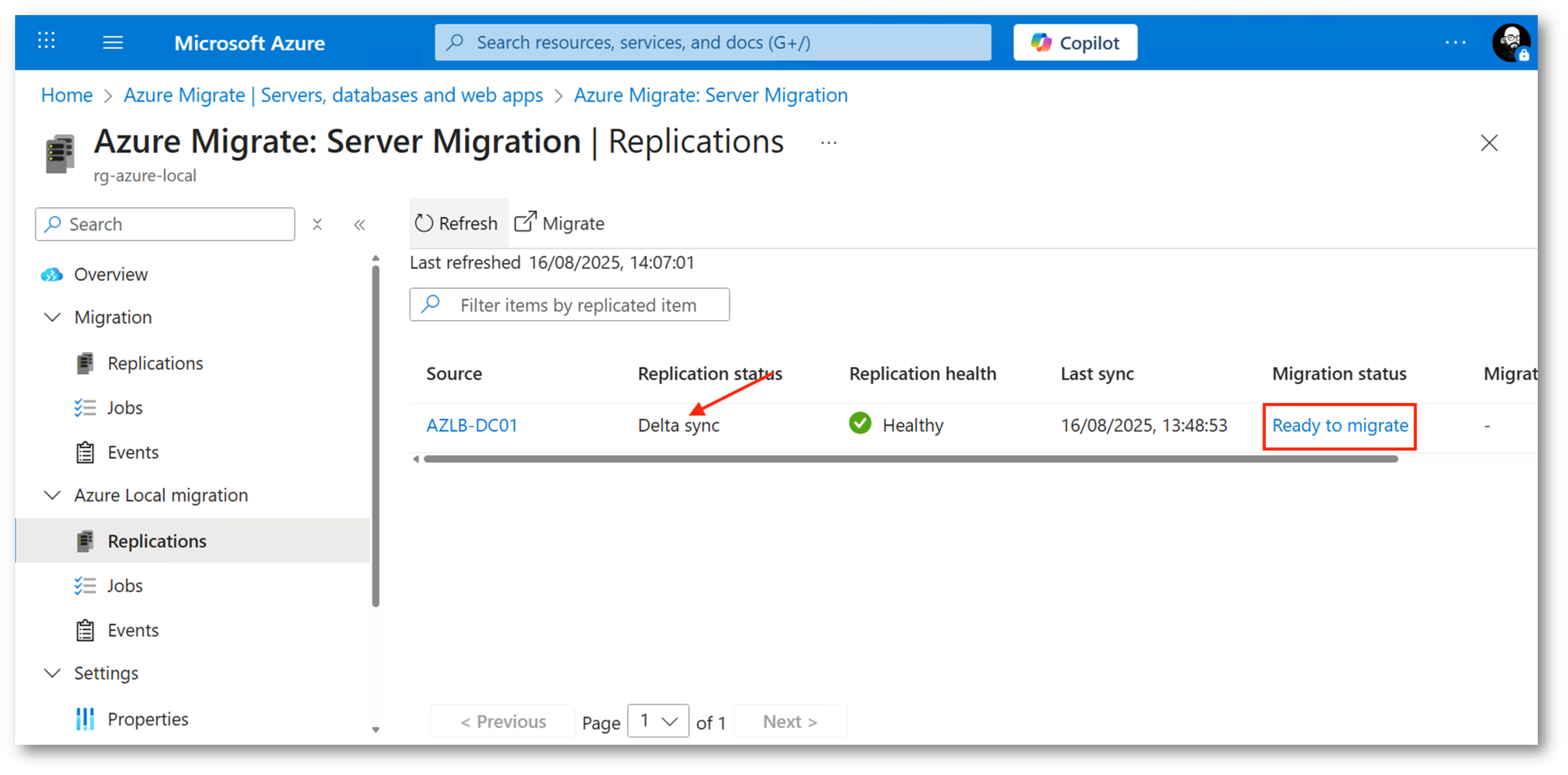 All’interno del progetto di migrazione avremo a disposizione il monitoraggio dello stato di replica, quando vedremo la dicitura Delta sync saremo pronti a spostare le istanze virtuali.
