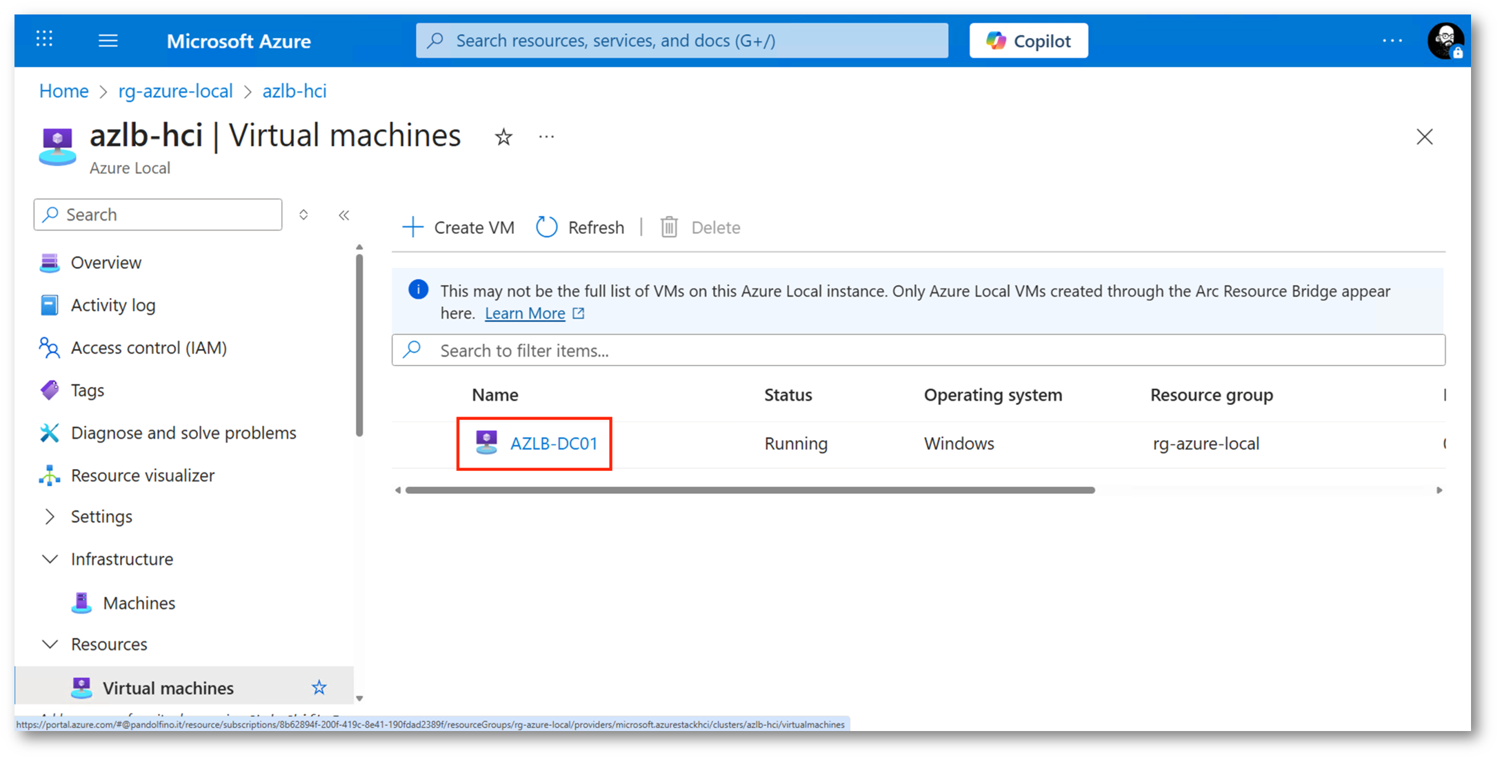 - Azure Local: Gestione delle Azure Arc virtual machine