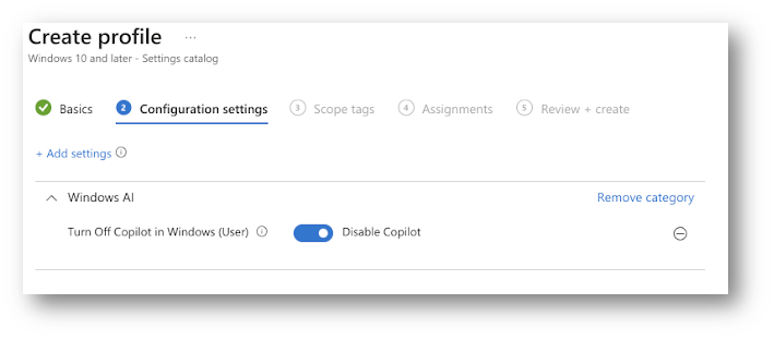 La nuova impostazione RemoveMicrosoftCopilotApp consente di disinstallare l’app Microsoft Copilot dai dispositivi in modo mirato.