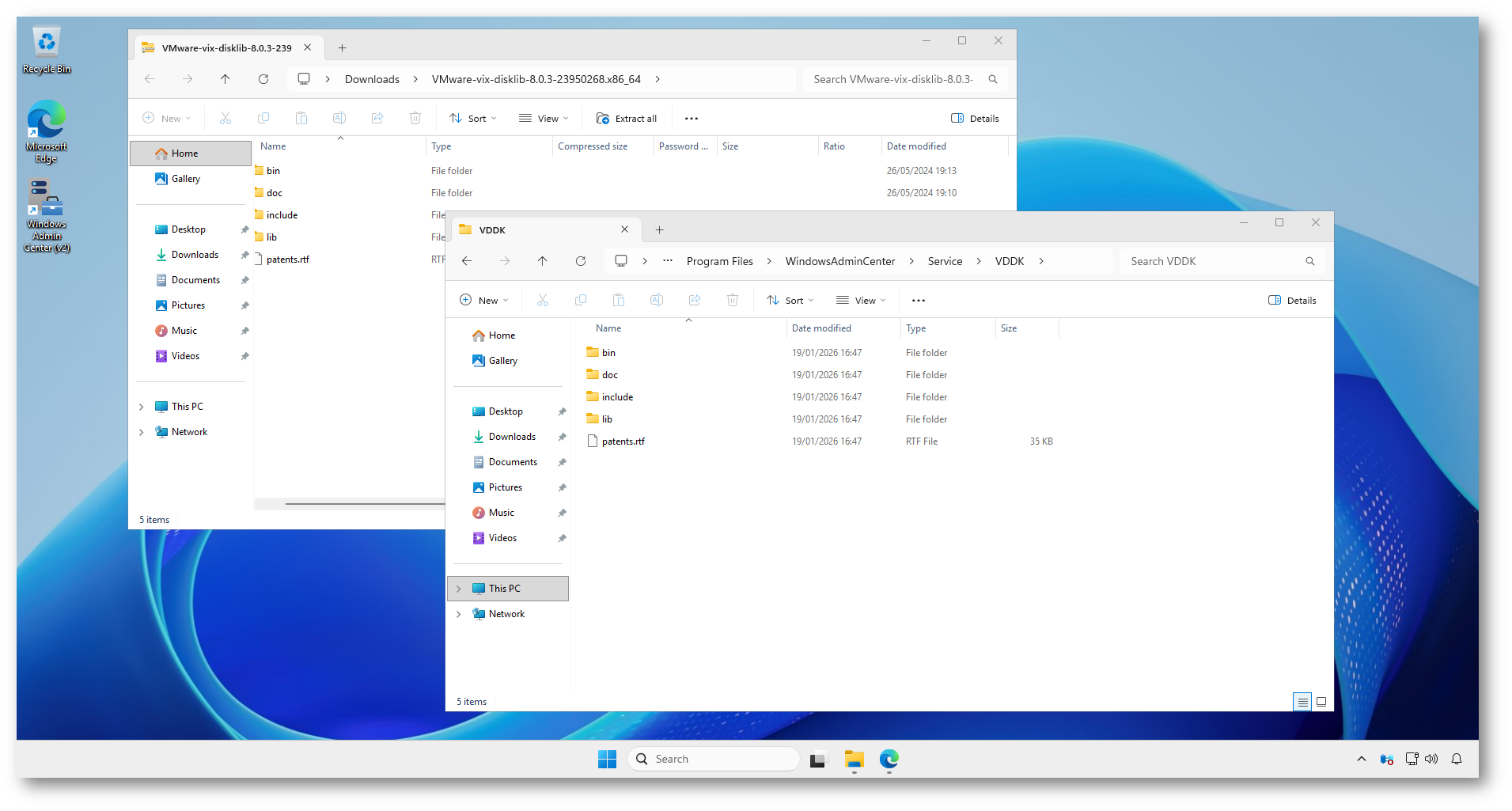 - Scaricate VMware Virtual Disk Development Kit (VDDK) versione 8.0.3. Estrarre il contenuto e copiarlo nella directory : ‘C:\Programmi\WindowsAdminCenter\Service\VDDK’. Assicuratevi di scaricare in modo specifico VDDK versione 8.0.3 . Le altre versioni non sono supportate